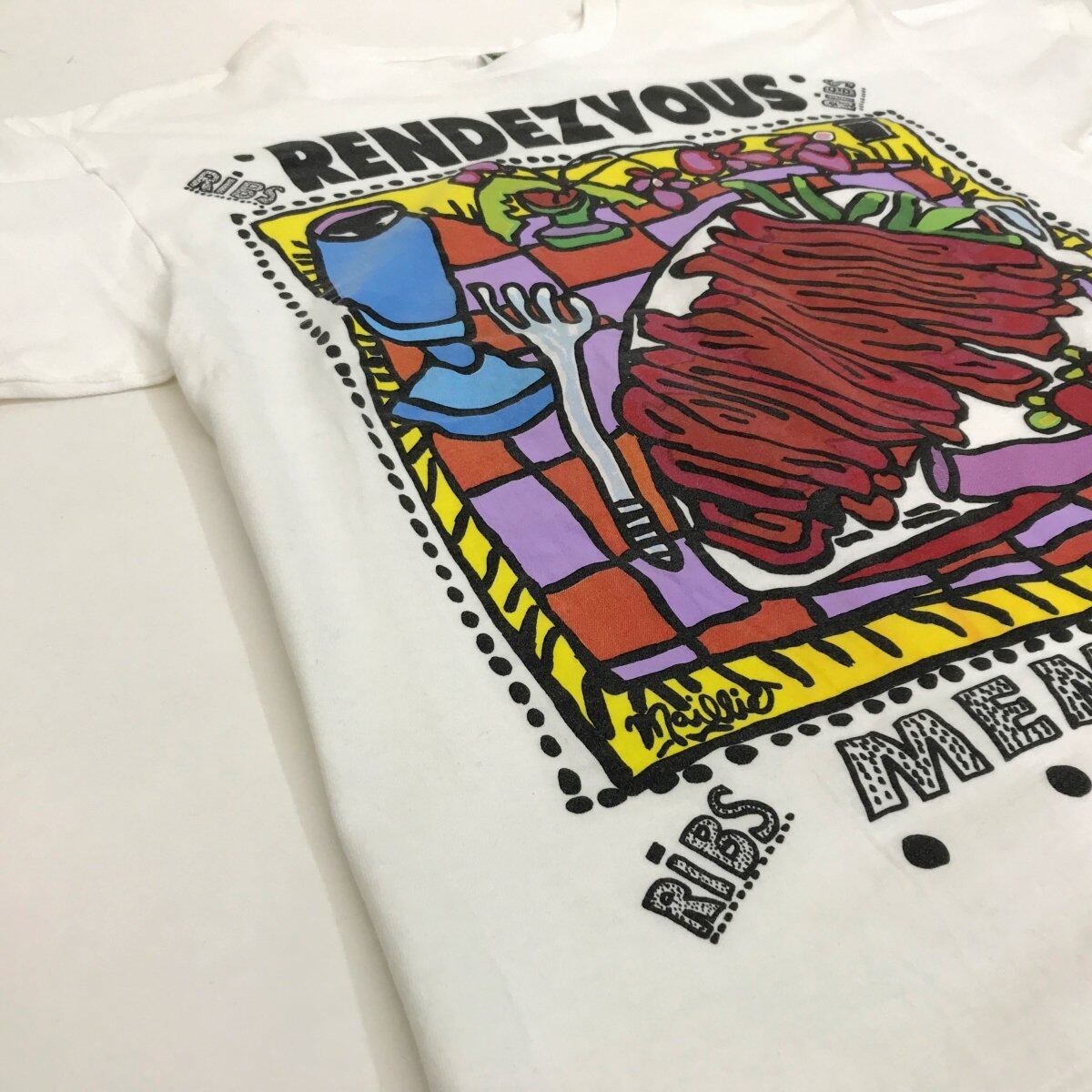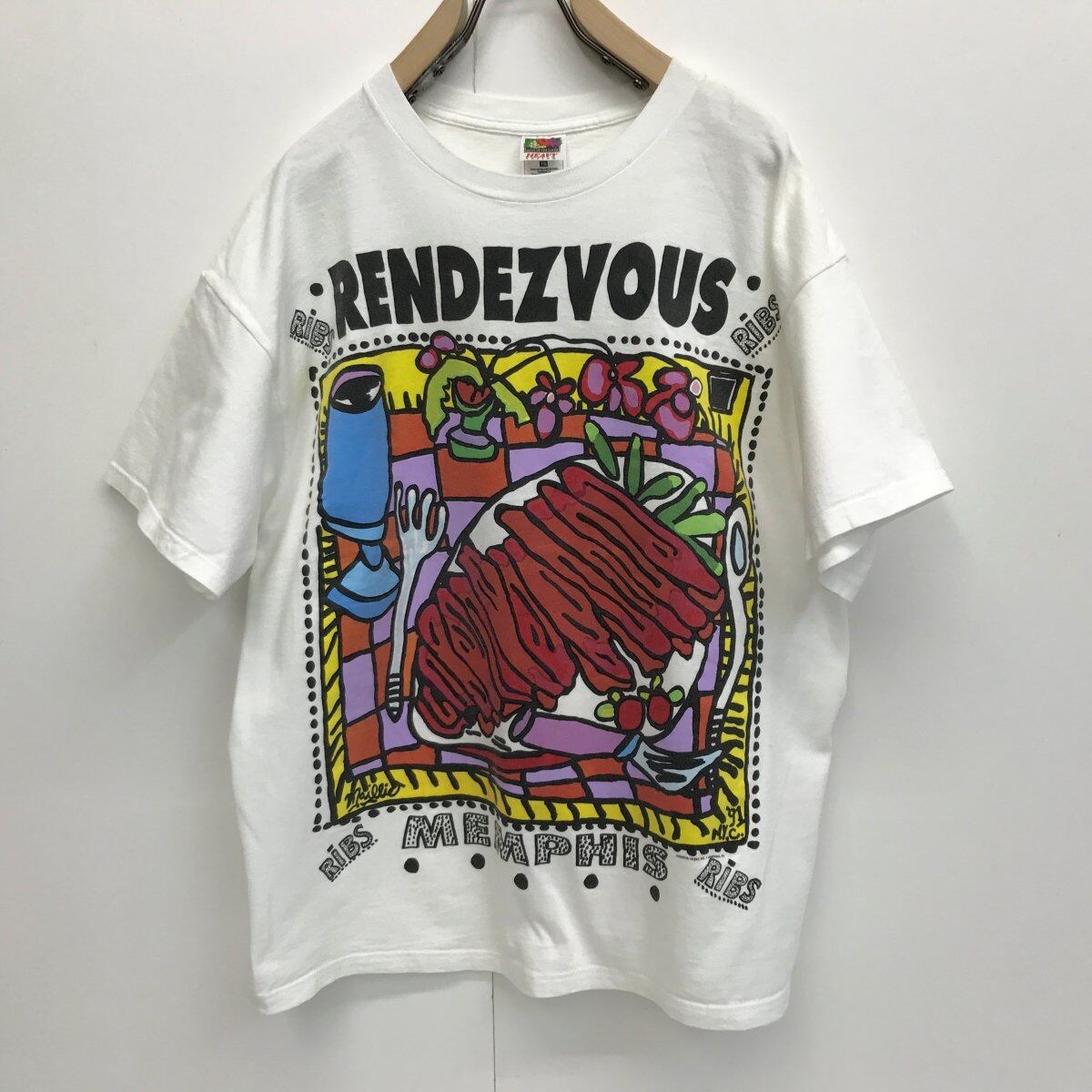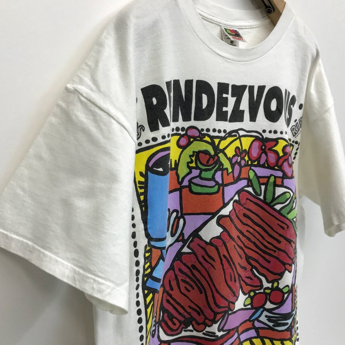 FRUIT OF THE LOOM|フルーツオブザルーム 90年代 CHARLIE VERGOS RENDEZVOUS RIBS ポップアート 半袖Tシャツ ホワイト XXL
