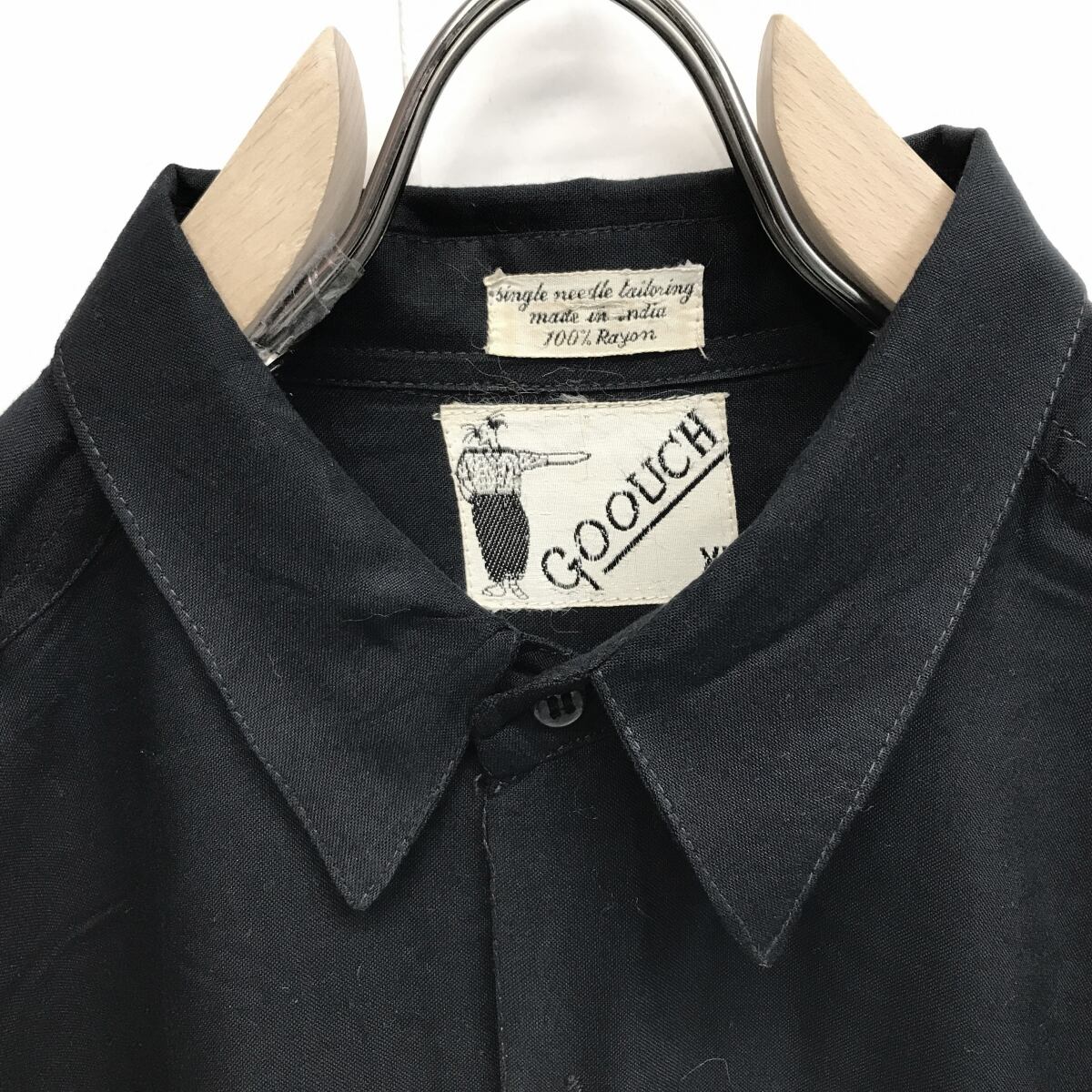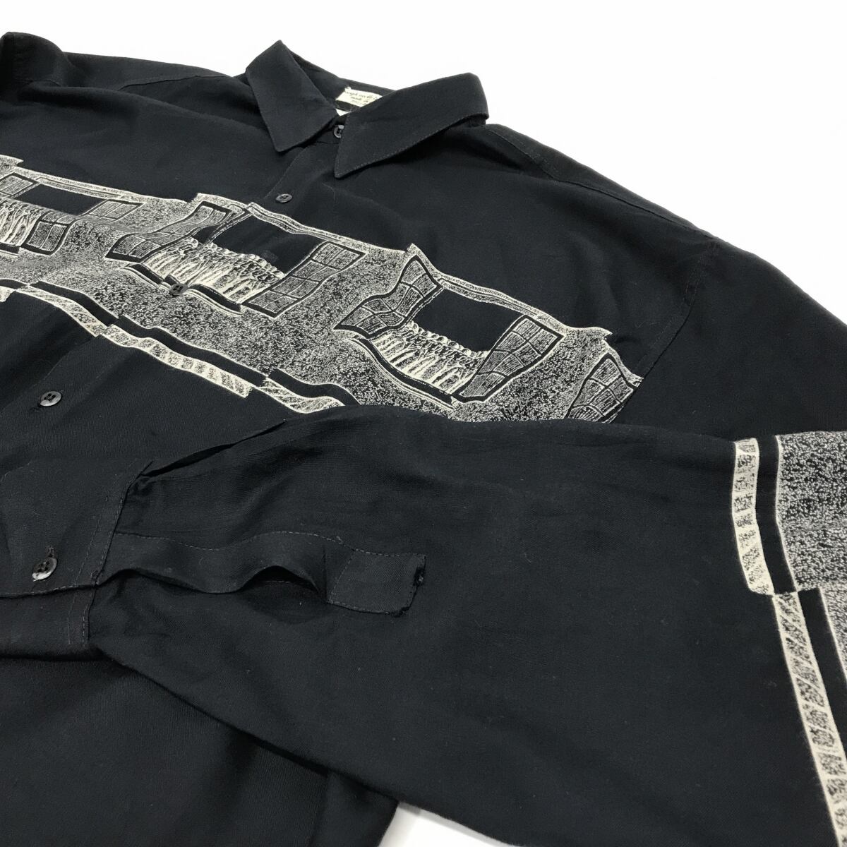 GOOUCH グーチ 80年代 ビンテージ 長袖 レーヨン柄シャツ ストリート&ウインドーデザイン柄シャツ ブラック XXL
