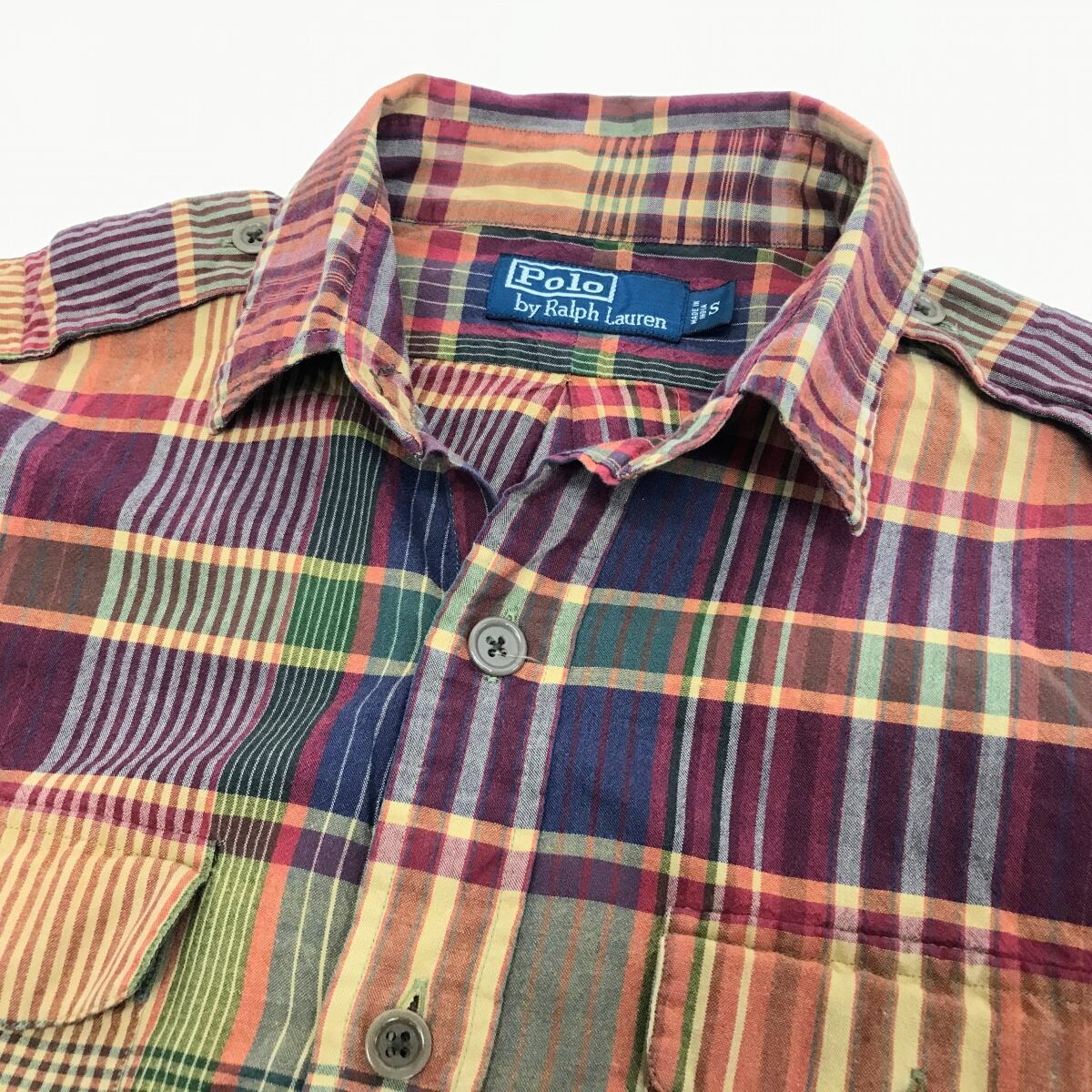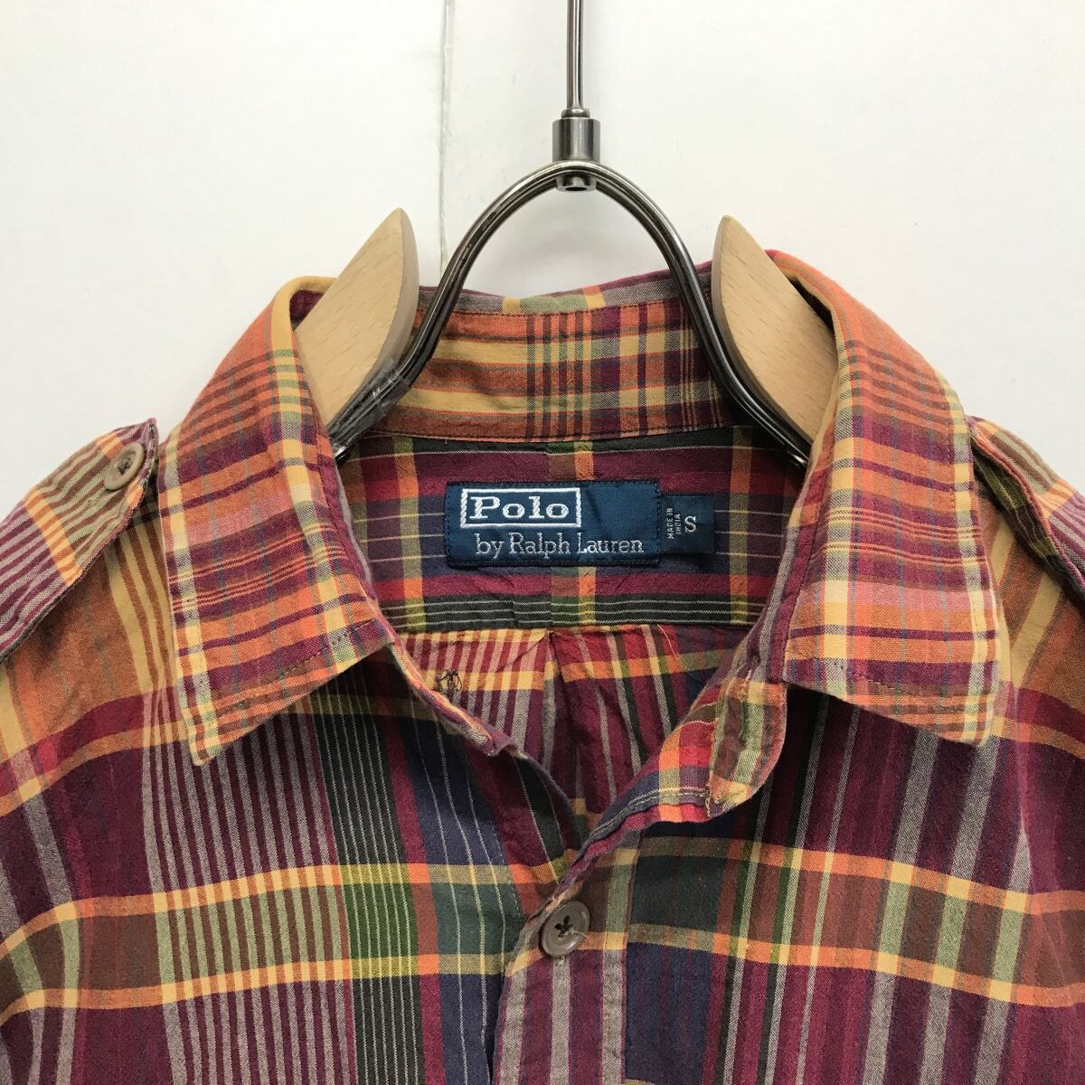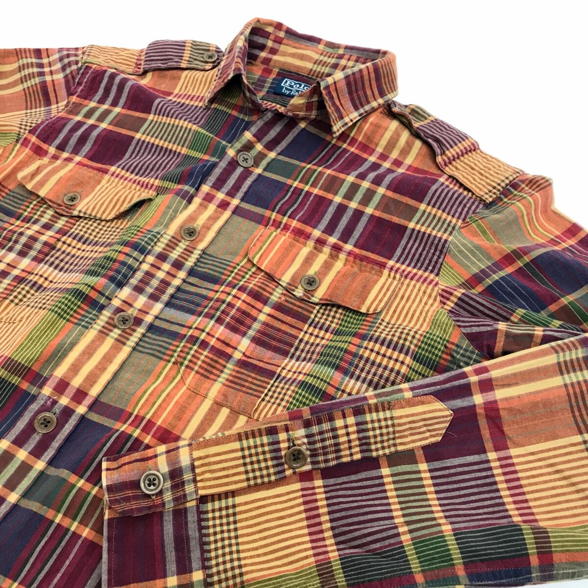 POLO by Ralph Lauren ラルフローレン 90年代 長袖 マドラスチェックシャツ オレンジ ML