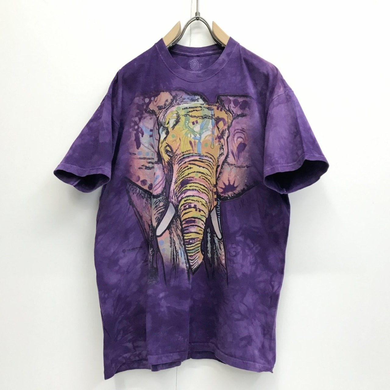 ザ マウンテン 00年代 DEAN RUSSO BIG ELEPHANT アートアニマルプリントTシャツ タイダイTシャツ デザインTシャツ パープル XL 半袖