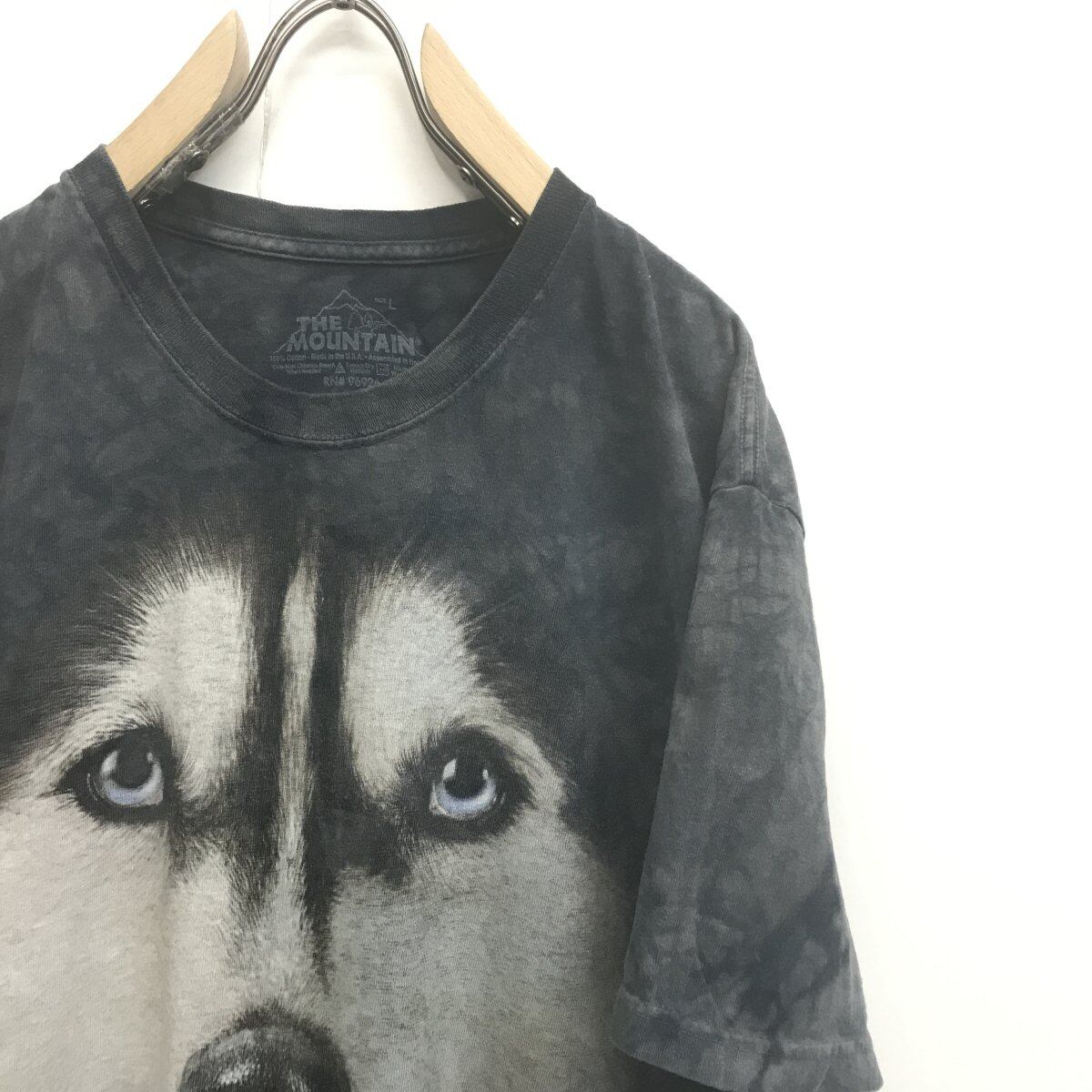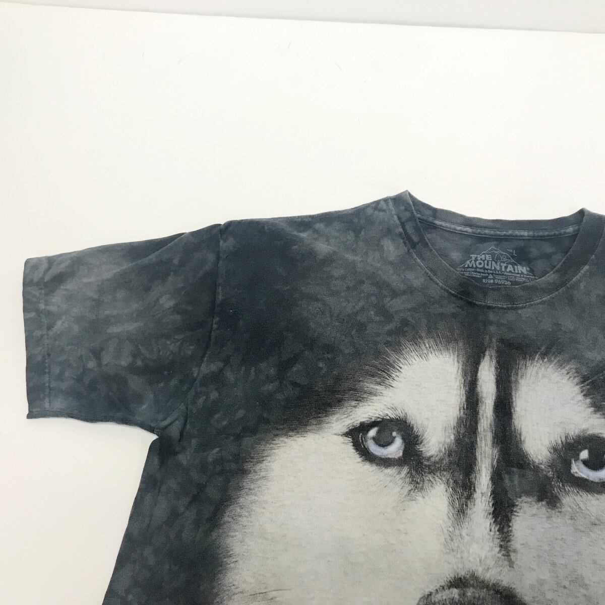 ザ マウンテン 00年代 VINCENT HIE SIBERIAN HUSKY ビッグフェイス アートアニマルプリントTシャツ タイダイTシャツ デザインTシャツ グレー XL 半袖