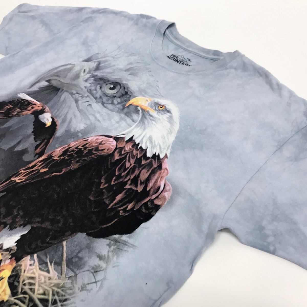 ザ マウンテン 00年代 VERDAYLE FORGET 白頭鷲 BALD EAGLE アートアニマルプリントTシャツ タイダイTシャツ デザインTシャツ アイスグレー XXL 半袖