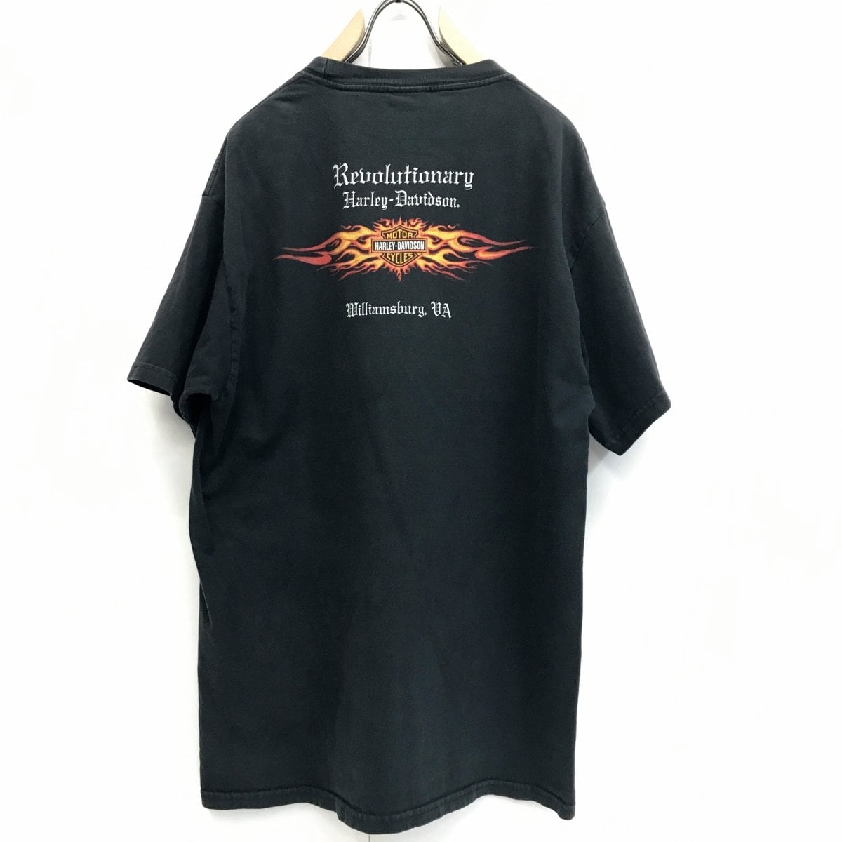 ハーレーダビッドソン 00年代 REVOLUTIONARY WILLIAMSBURG 半袖Tシャツ ブラック XL