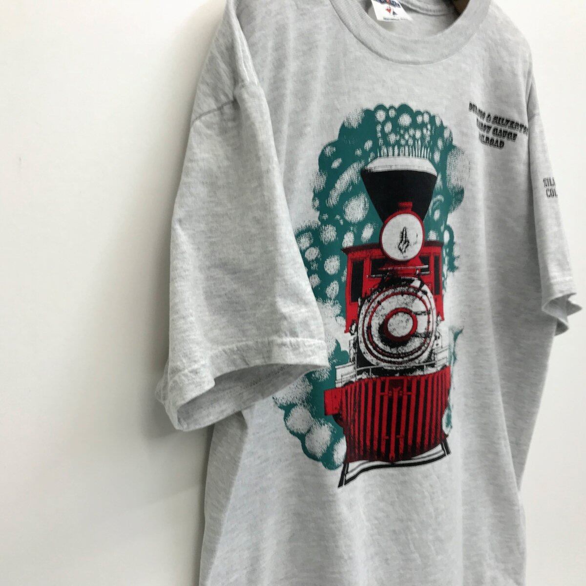 JERZEES ジャージーズ 90〜00年代 おそらく USA製 蒸気機関車 両面プリント DURANGO & SIVERTON NARROW GAUGE 鉄道 ライトアッシュグレー XL