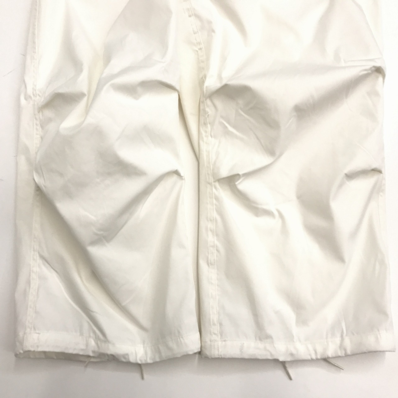 膝にプリーツが入り ウエストと裾はドローコードで調整