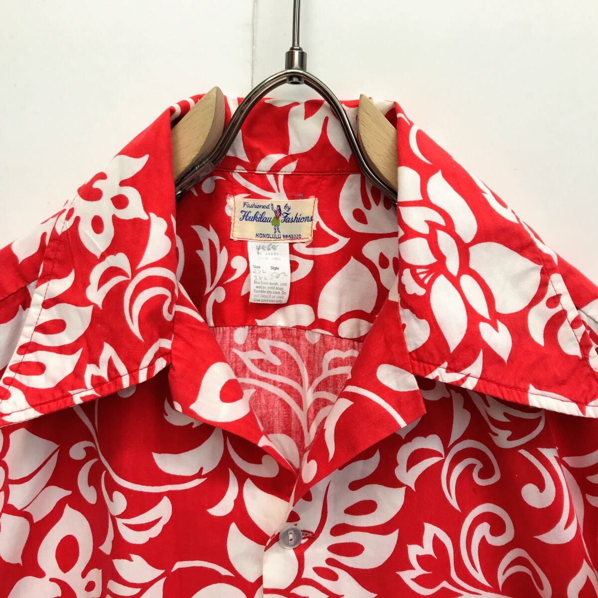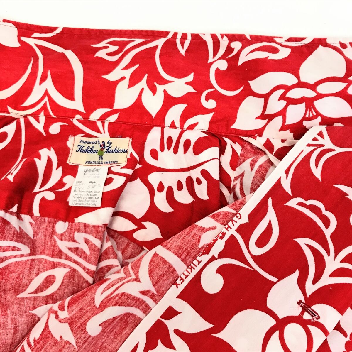 HUKILAU FASHIONS フキラウファッション 70年代 USA製 ビンテージ アロハ ハワイアンシャツ 大花柄 レッド 半袖 XXL