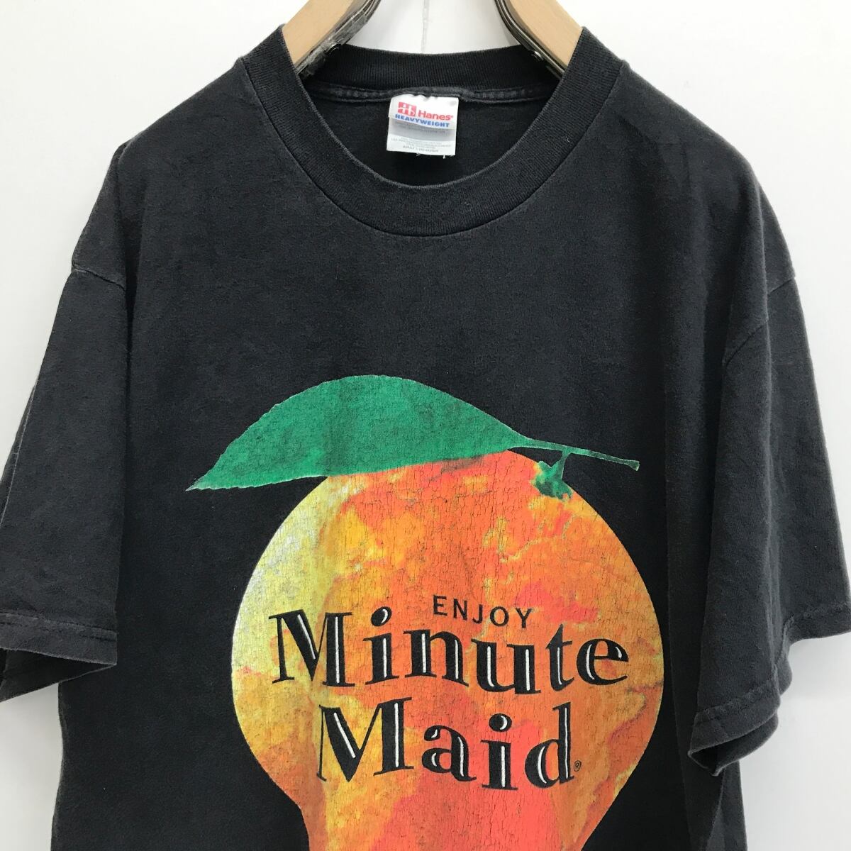 HANES ヘインズ 90年代 MINUTE MAID ORANGE Tシャツ 企業ロゴ ブラック XL 半袖