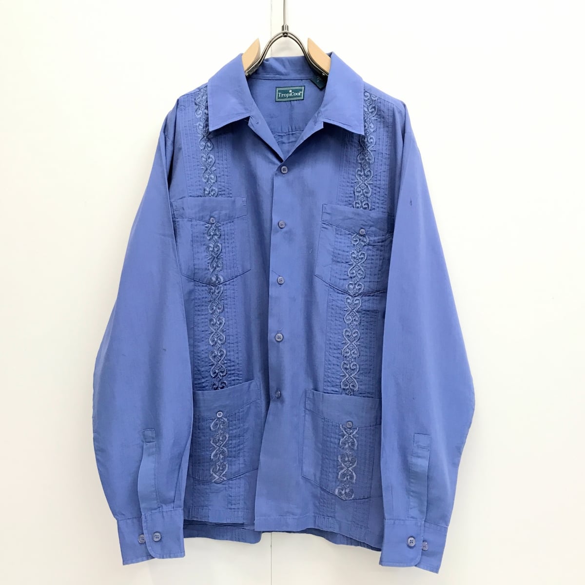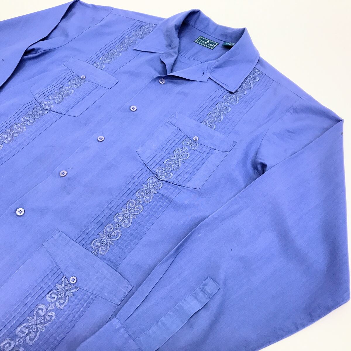 TROPICOOL 90?00年代 キューバシャツ 長袖 GUAYABERA SHIRTS ライトブルー XL