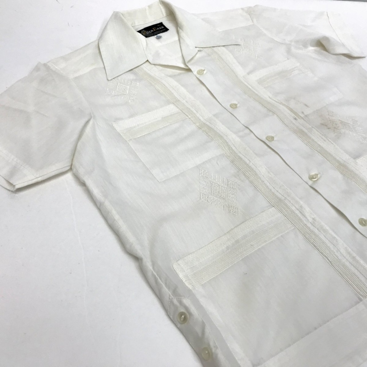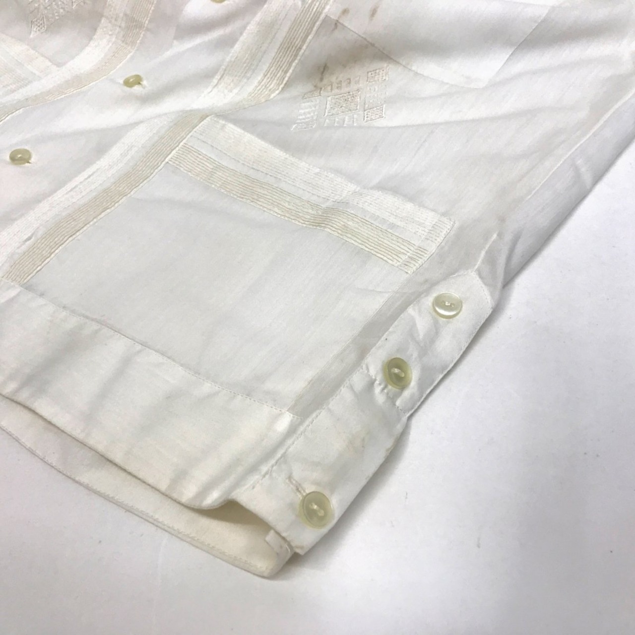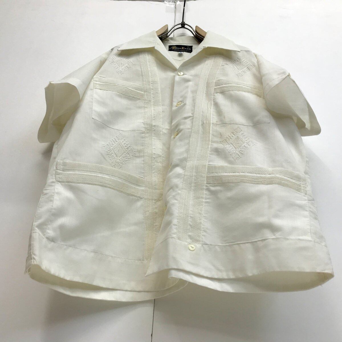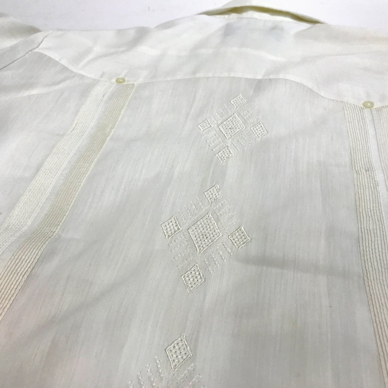 ユッカチェン 襟芯入り 60?70年代 半袖 刺繍入り キューバシャツ GUAYABERA SHIRTS オフホワイト L