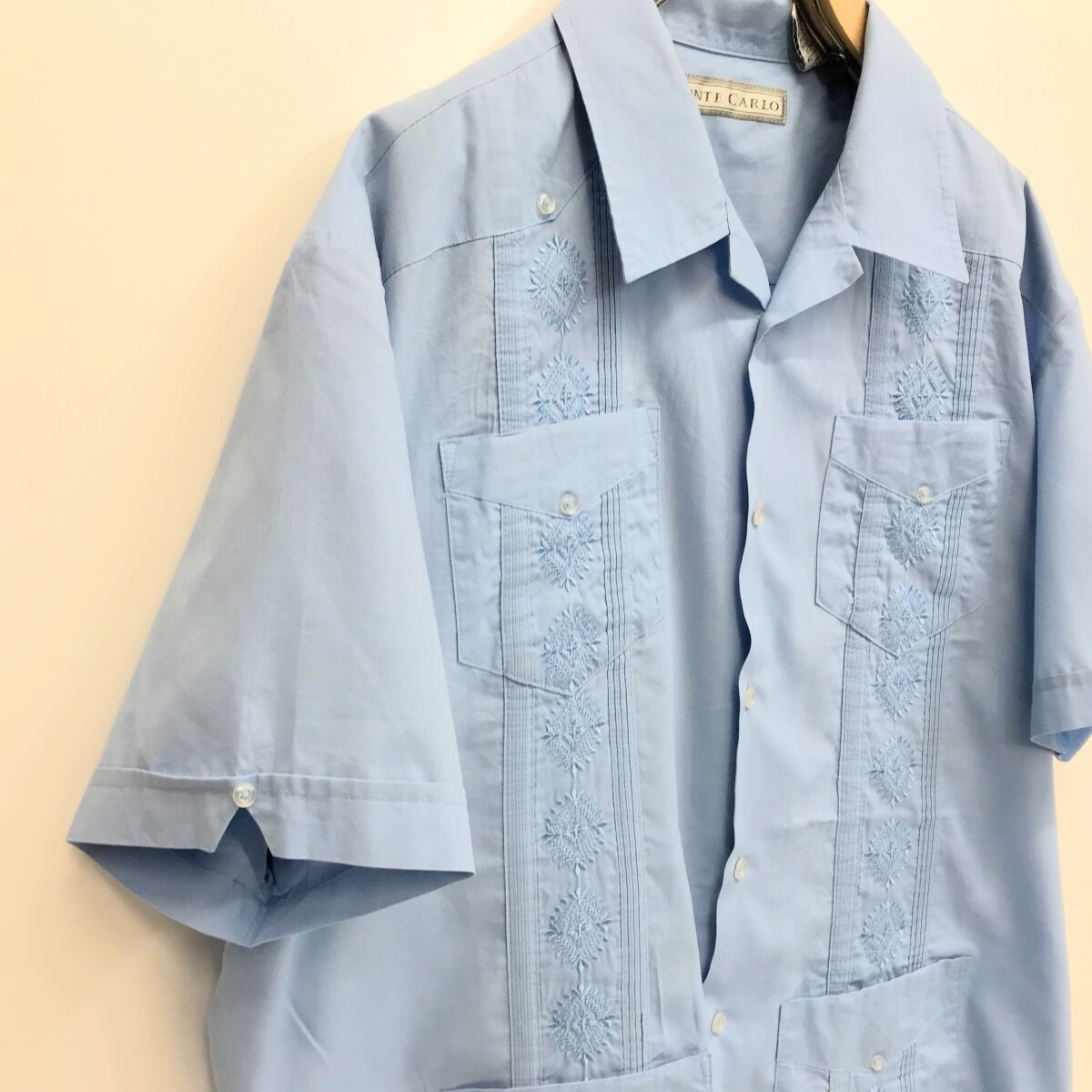 MONTE CARLO モンテカルロ 90〜00年代 半袖 刺繍入り キューバシャツ GUAYABERA SHIRTS アイスブルー XXL