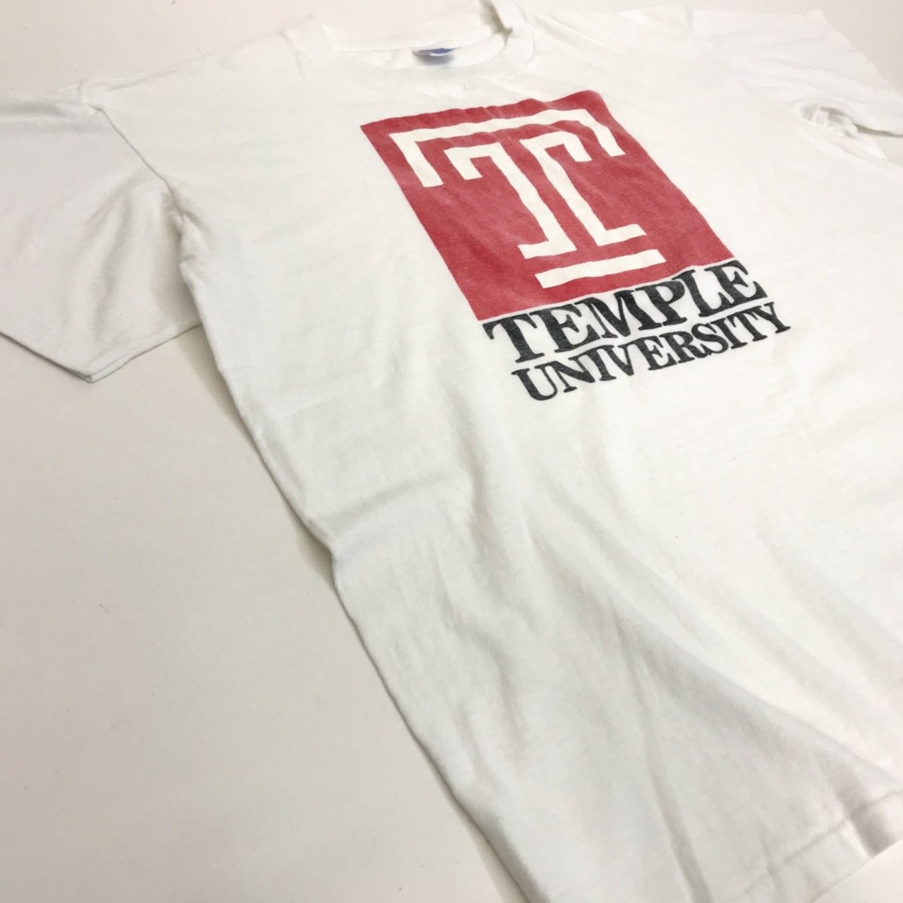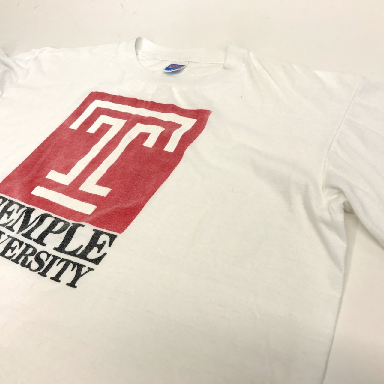 MEGA-TEE サビ? 90年代 USA製 TEMPLE UNIVERSITY RED OWLS カレッジロゴTシャツ ホワイト XXL 半袖