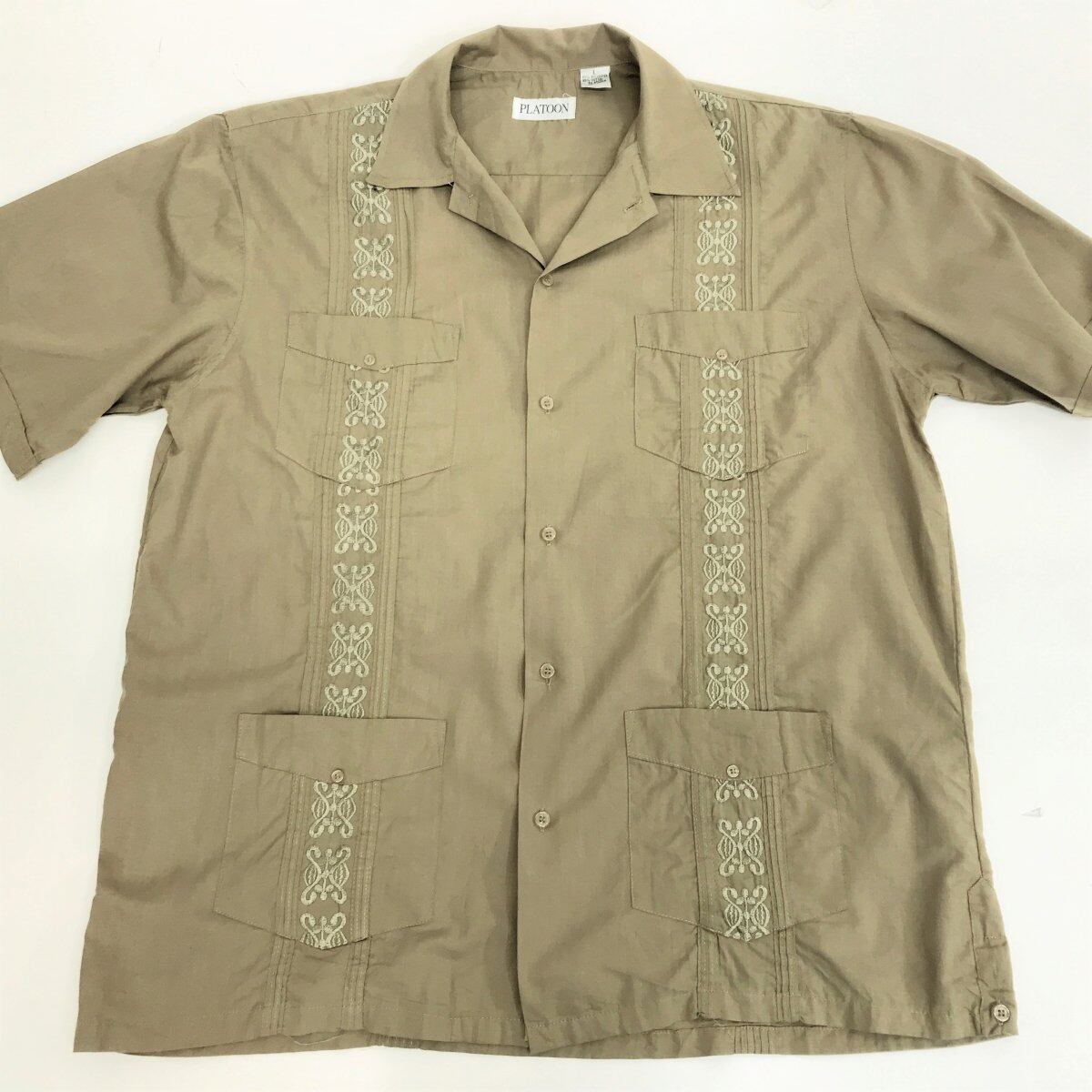 プラトーン 90〜00年代 襟芯入り 半袖 キューバシャツ GUAYABERA SHIRTS ベージュ XL