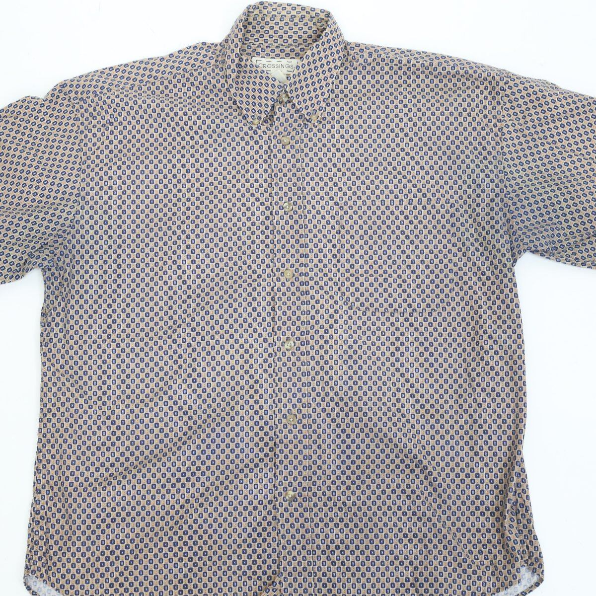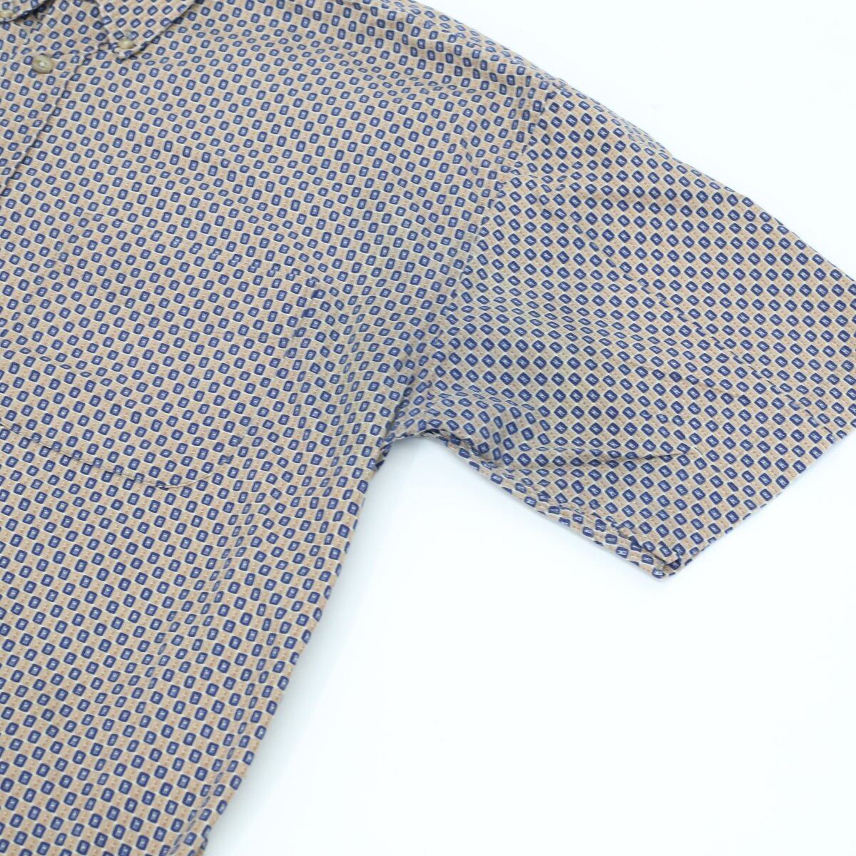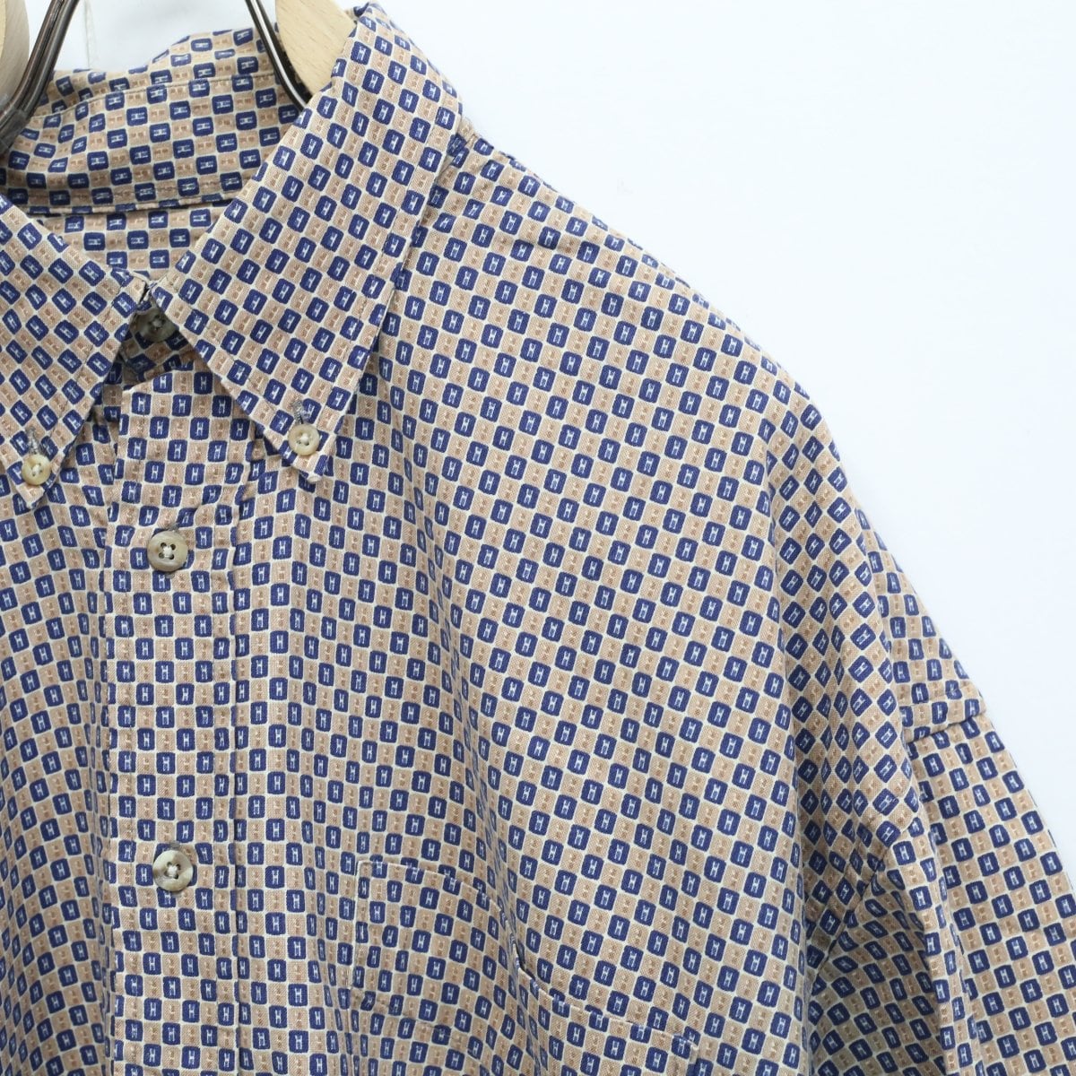 USED 90 〜 00 年代 CROSSINGS 総柄 モノグラム ボタンダウン シャツ ブラウン L 半袖
