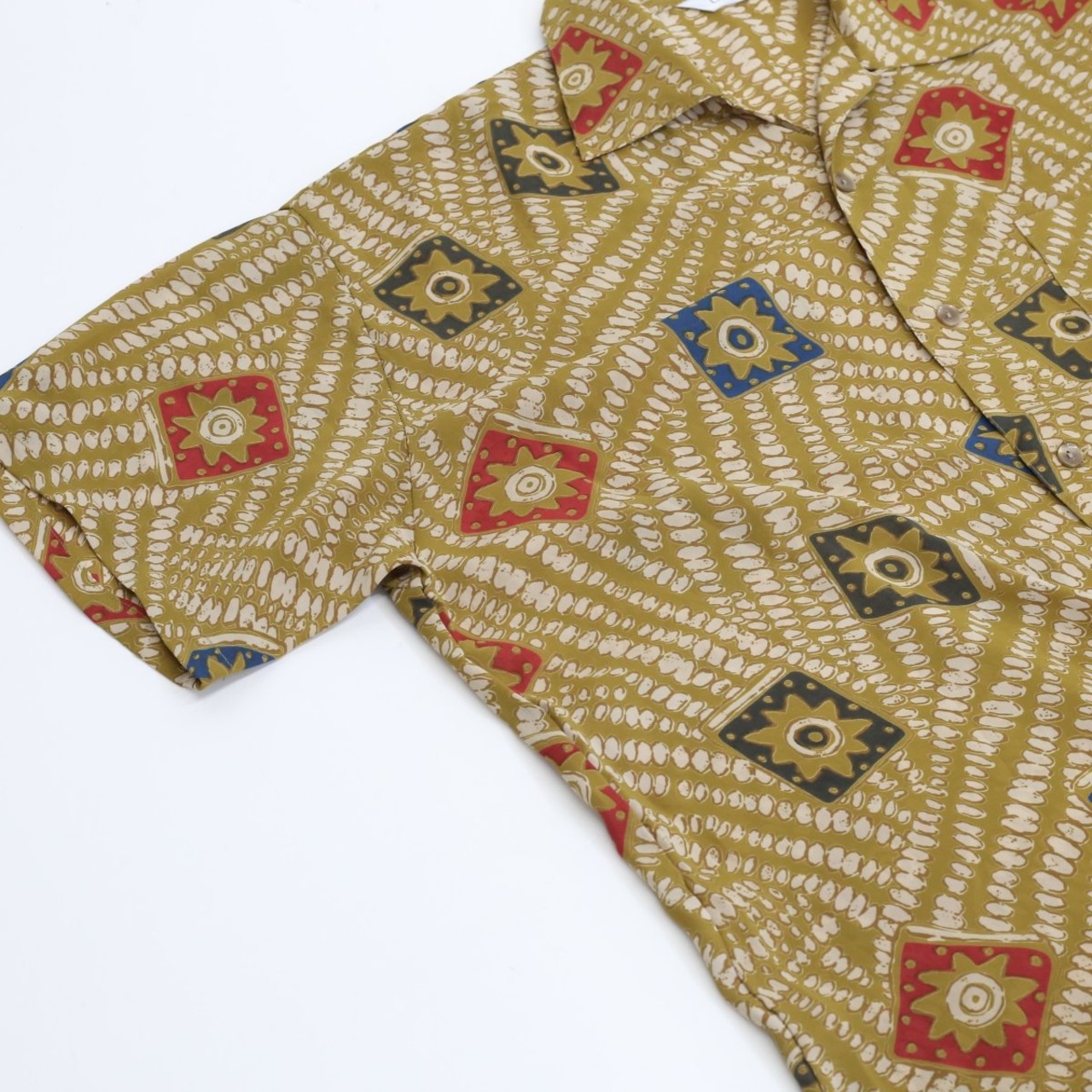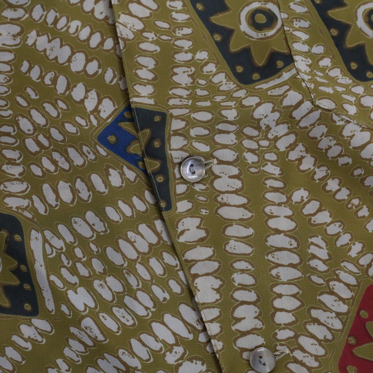 日本製の透け感のある軽やかなシャツです。どこかアジアンテイストな柄も魅力です。