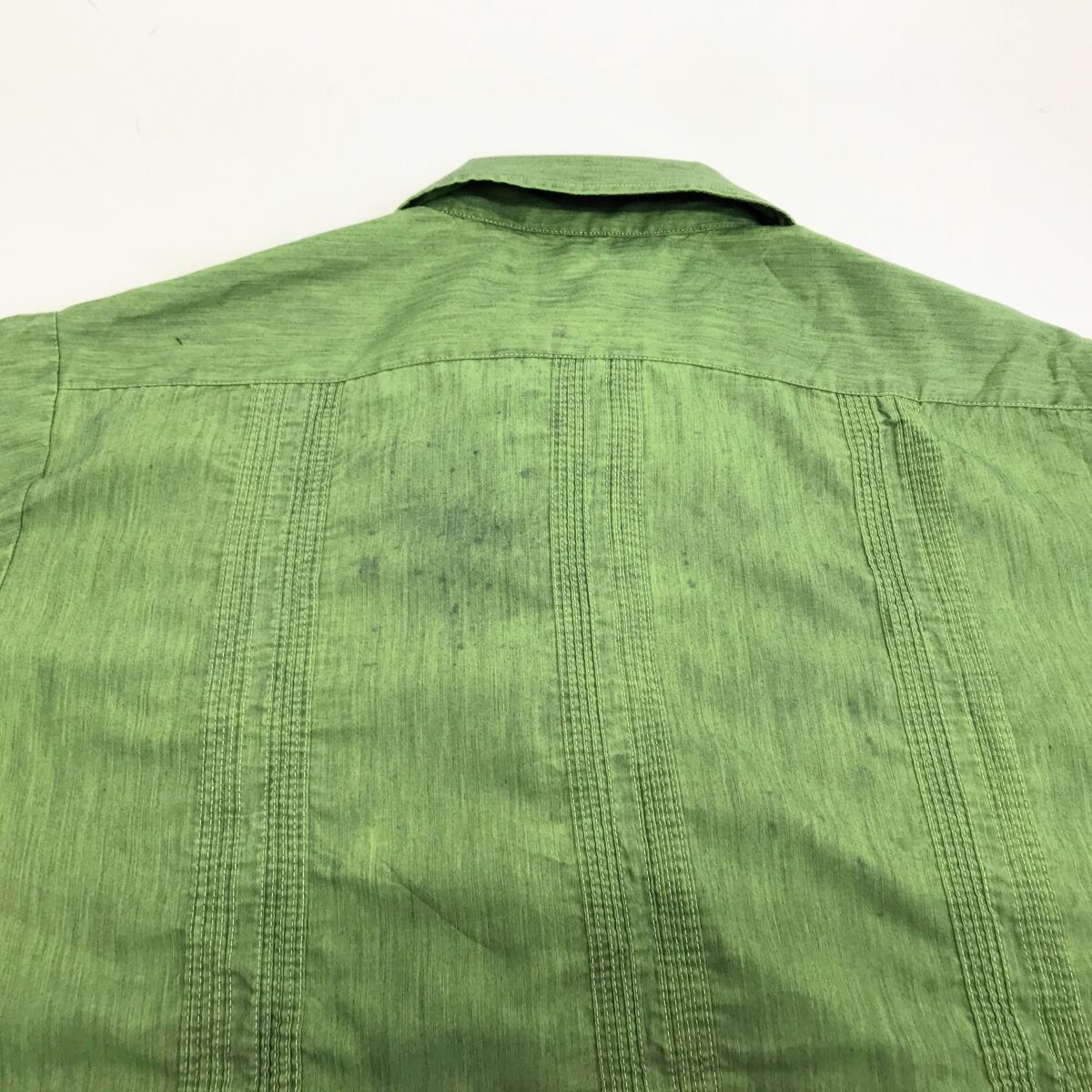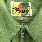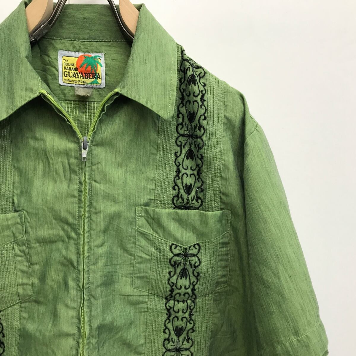 ハバンド キューバシャツ 80〜90年代 半袖 フルジップ 刺繍入り キューバシャツ GUAYABERA SHIRTS スモーキーグリーン XL タグ