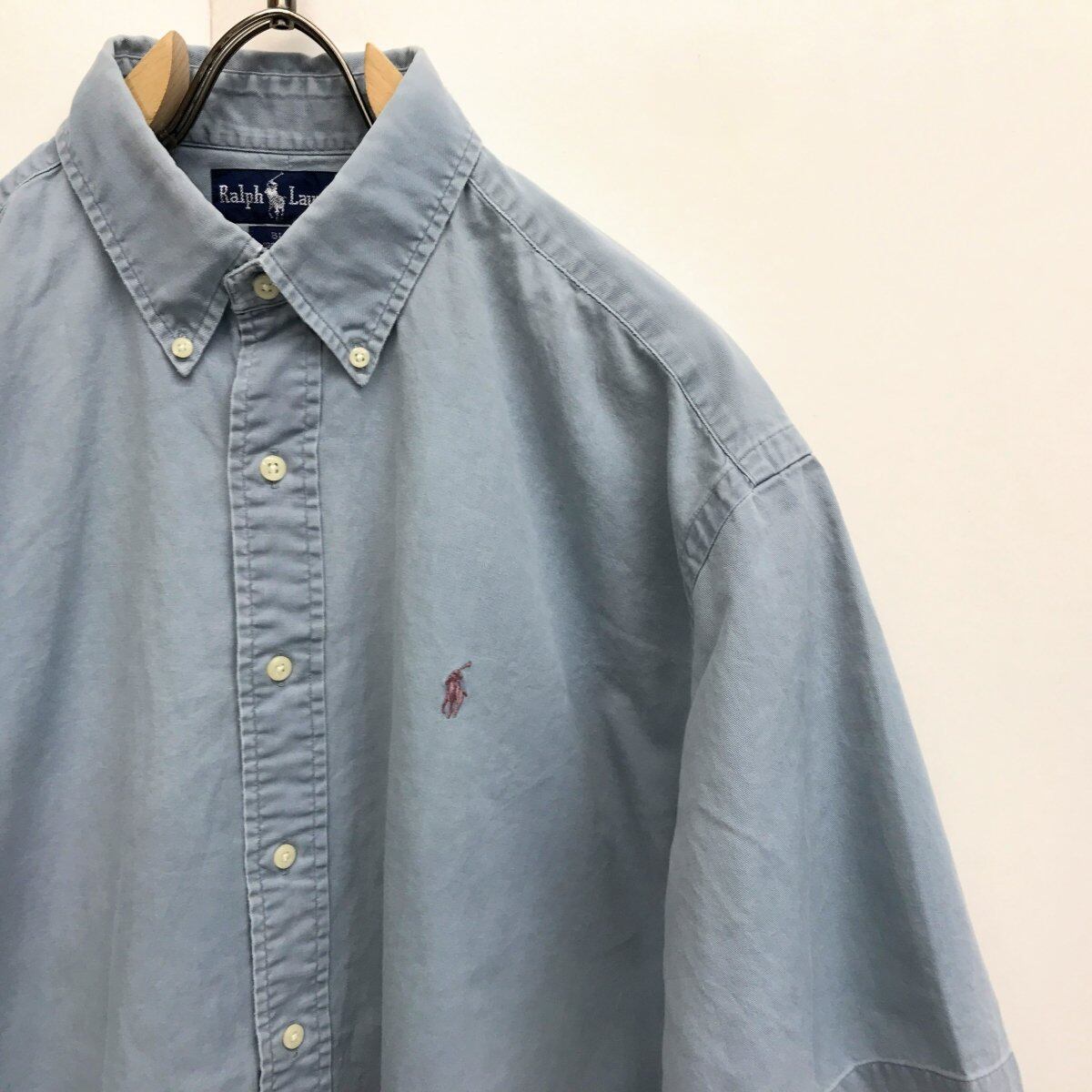 ラルフローレン 90年代 BRAKE コットンボタンダウンシャツ ブルーグレー XL 半袖 タグ