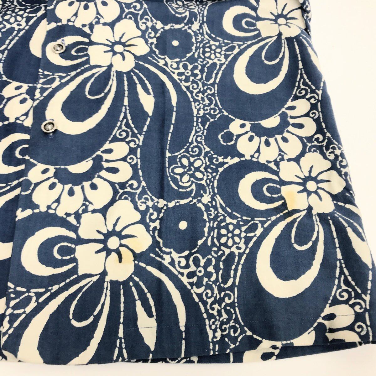 60?70年代 襟芯入り コットンアロハシャツ ハワイアンシャツ メタル風ボタン 藍色和柄風? 半袖 XL タグ
