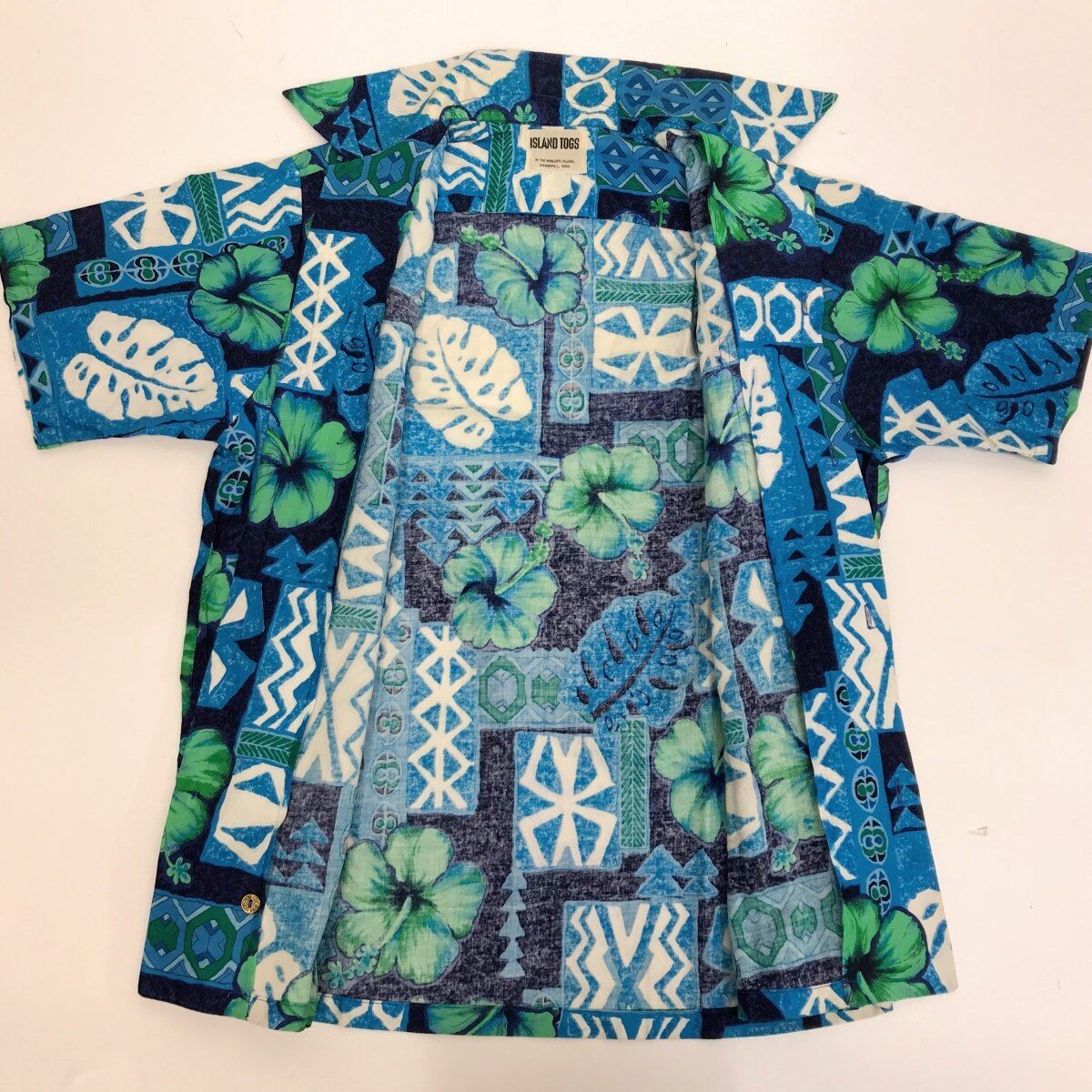 アイランドトグス 60〜 70年代 ハワイアンシャツ アロハシャツ ブルー 半袖 ML タグ