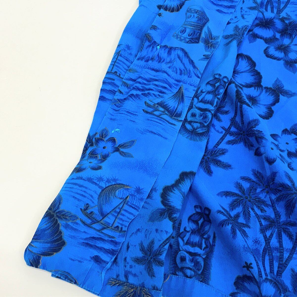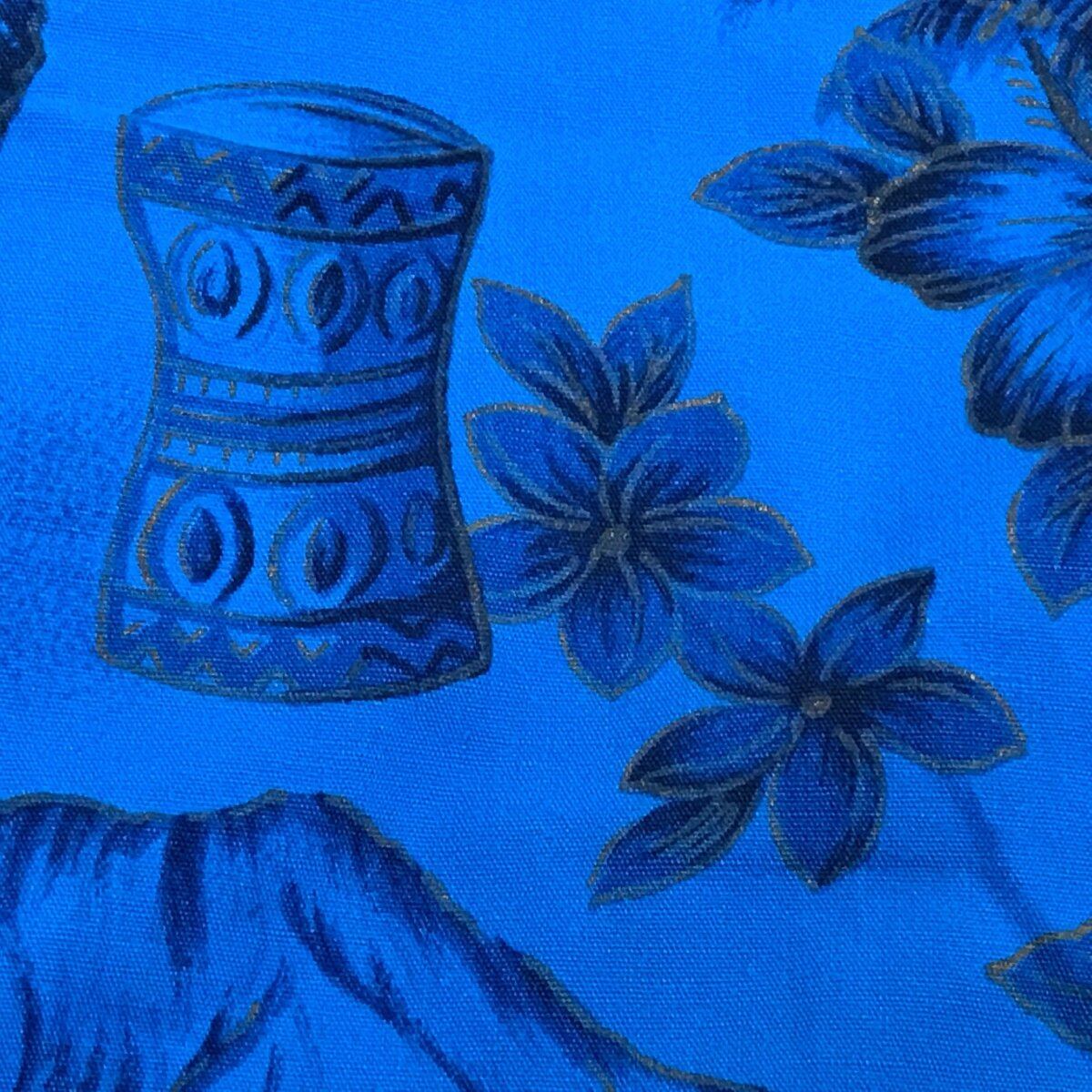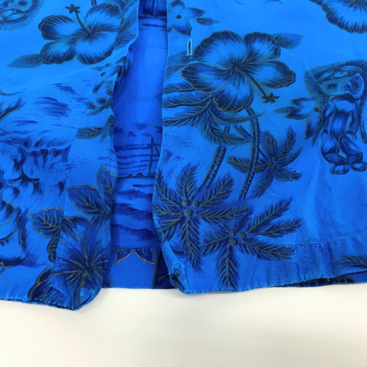 MADE IN HAWAII 60〜 70年代 襟芯入り ハワイアンシャツ アロハシャツ ブルー 半袖 ML タグ