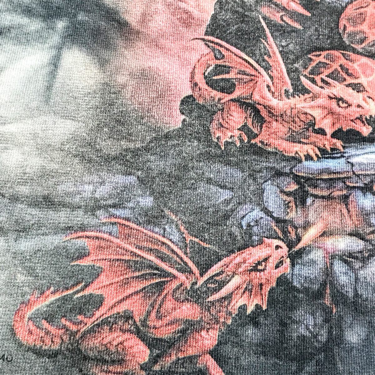 ザ マウンテン 00年代 AGE OF DRAGONS 火吹きドラゴンプリントTシャツ タイダイTシャツ グレー XL 半袖 タグ