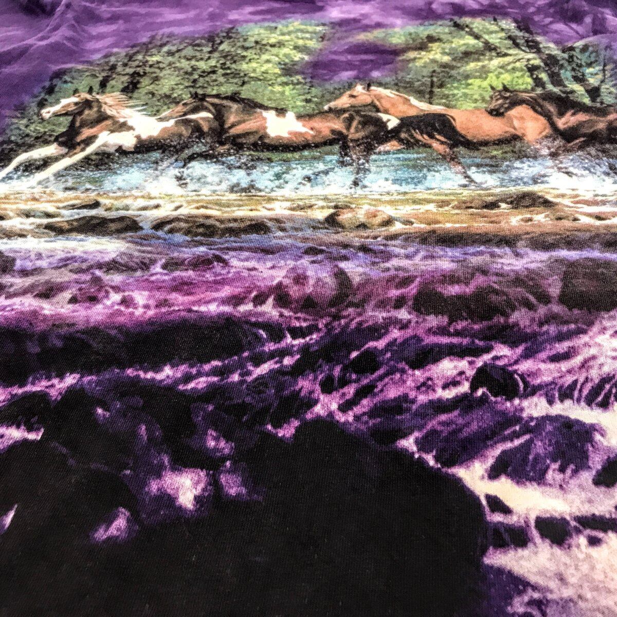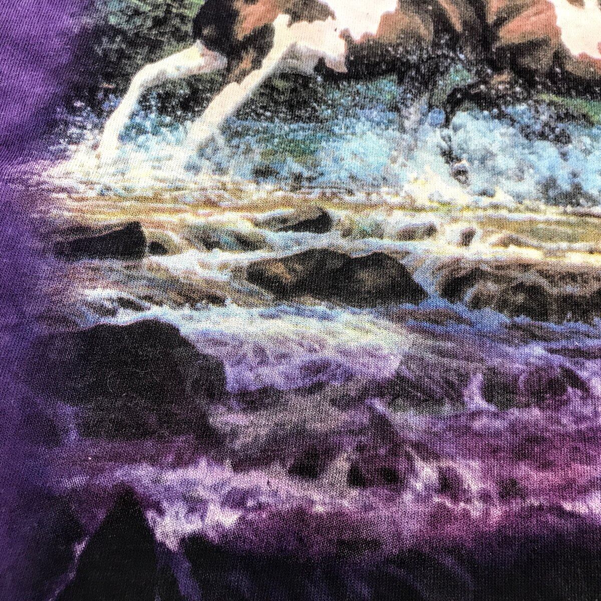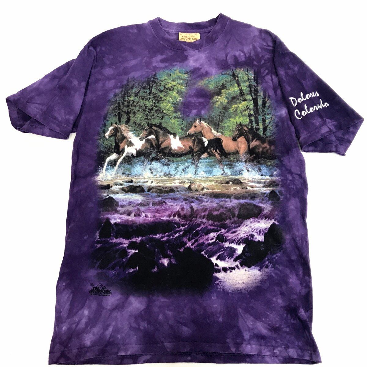 ザ マウンテン 00年代 CHRIS CUMMINGS HORSE 馬 プリントTシャツ タイダイTシャツ ダークパープル L 半袖 タグ