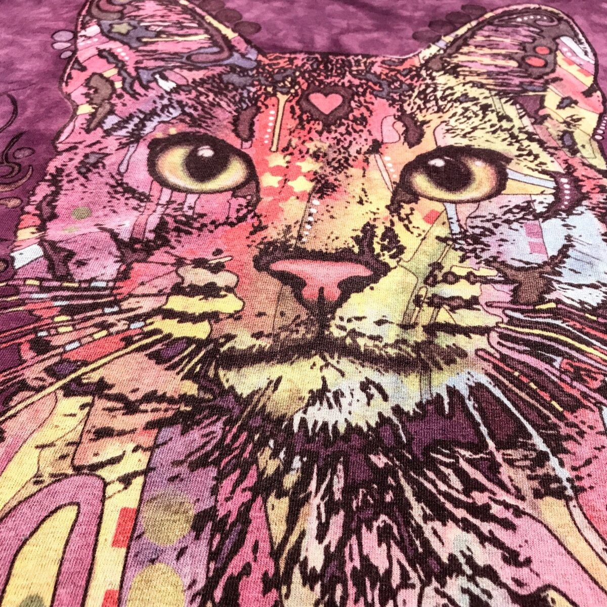 THE MOUNTSIN ザ マウンテン 00年代 DEAN RUSSO ABYSSINIAN CAT アビシニアン 猫 アートプリントTシャツ タイダイTシャツ レッドパープル XXL 以上〜 半袖 タグ