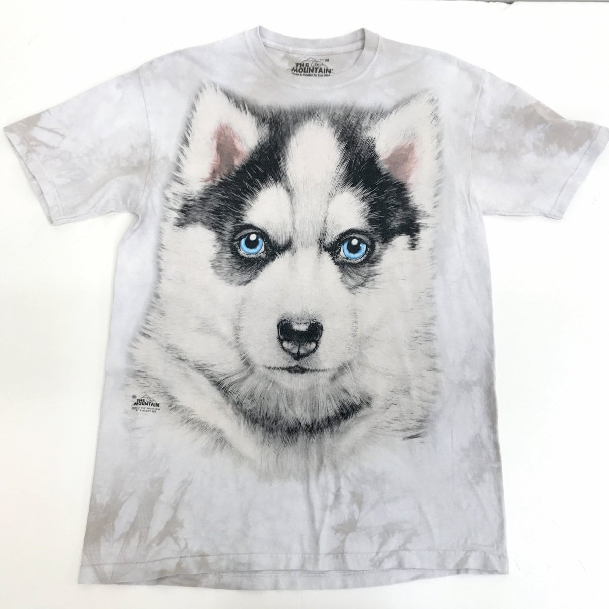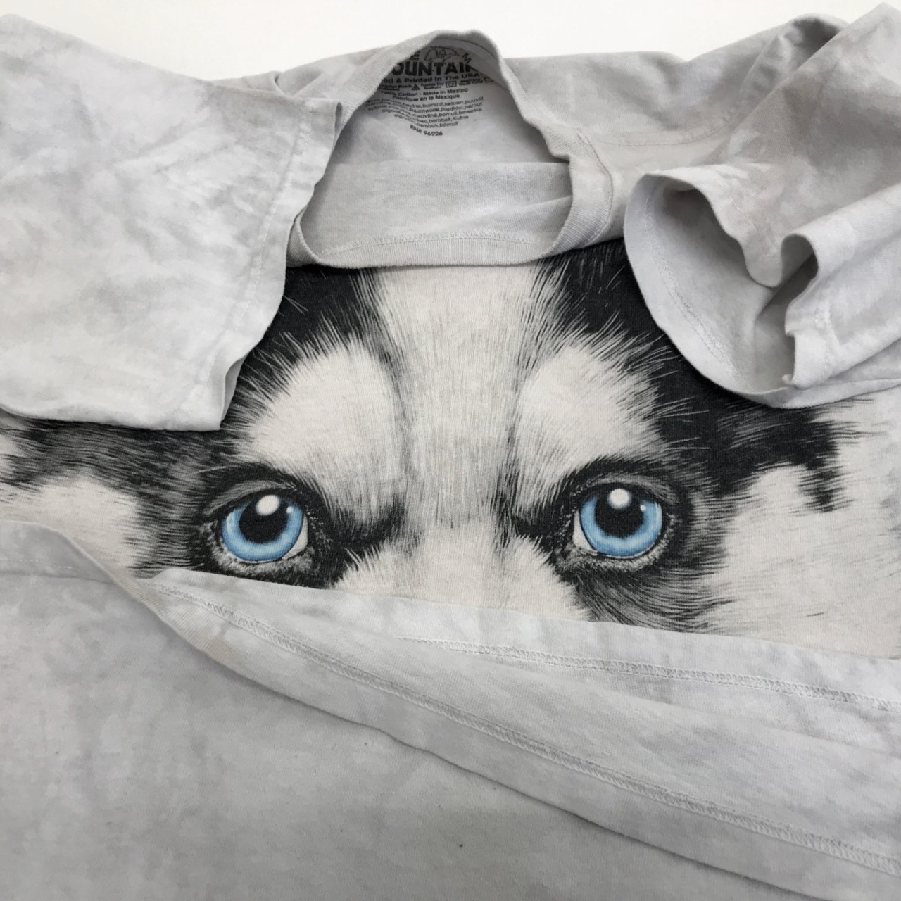 ザ マウンテン 00年代 VINCENT HIE ミニチュア シベリアンハスキー ビッグフェイス プリントTシャツ タイダイTシャツ ライトグレーベージュ L 半袖 タグ