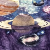 太陽系の惑星と星雲 銀河 恒星が描かれていますが