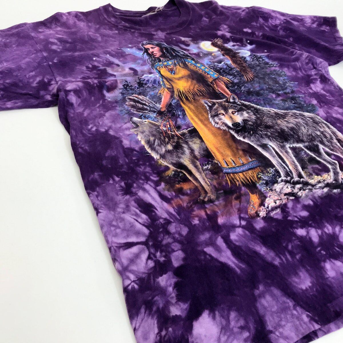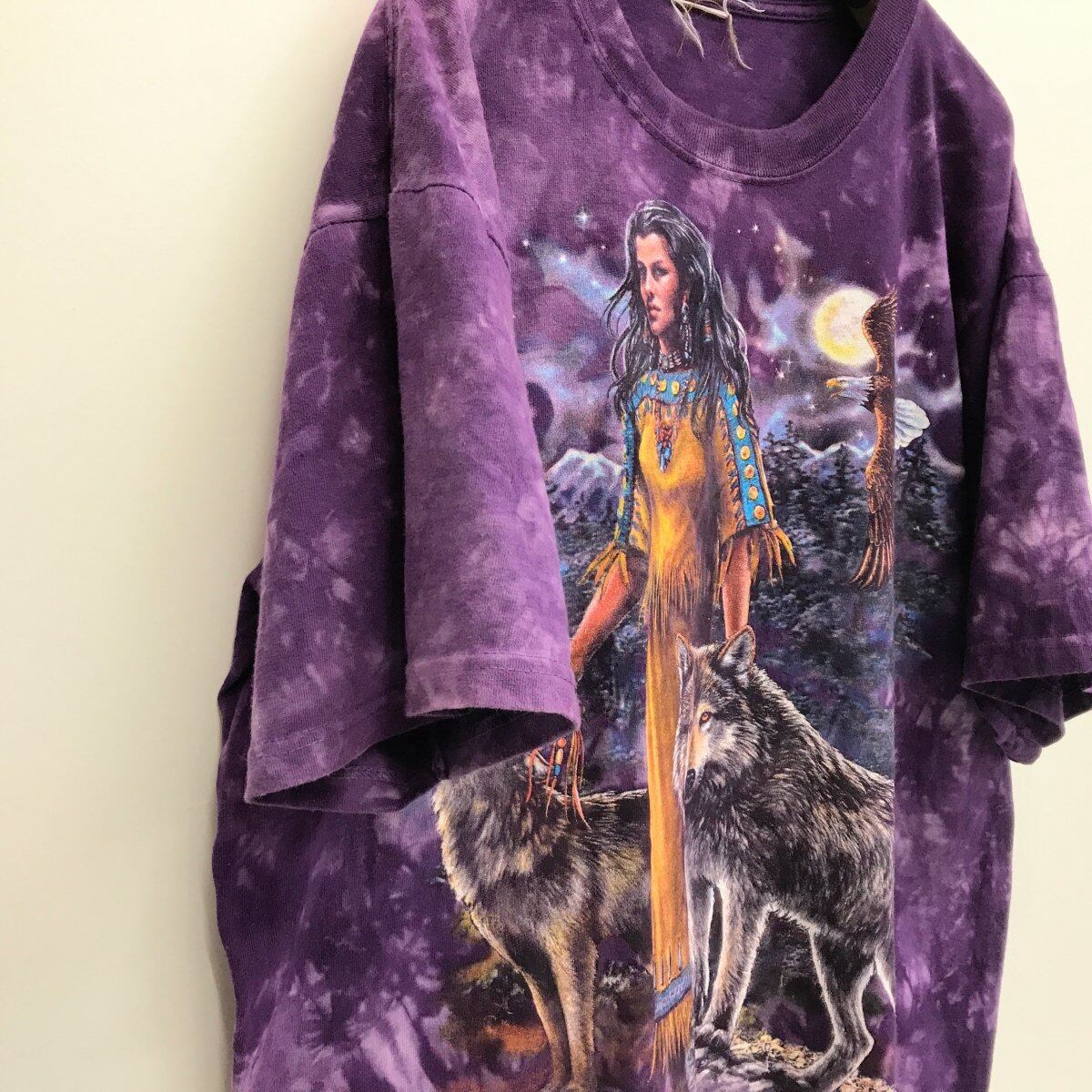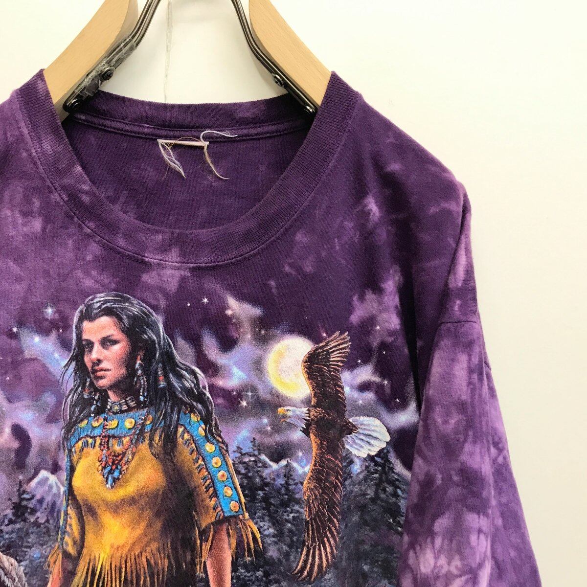 90〜 00年代 ネイティブ アメリカン & ウルフ と バルドイーグル タイダイ Tシャツ パープル XXL 半袖 タグ