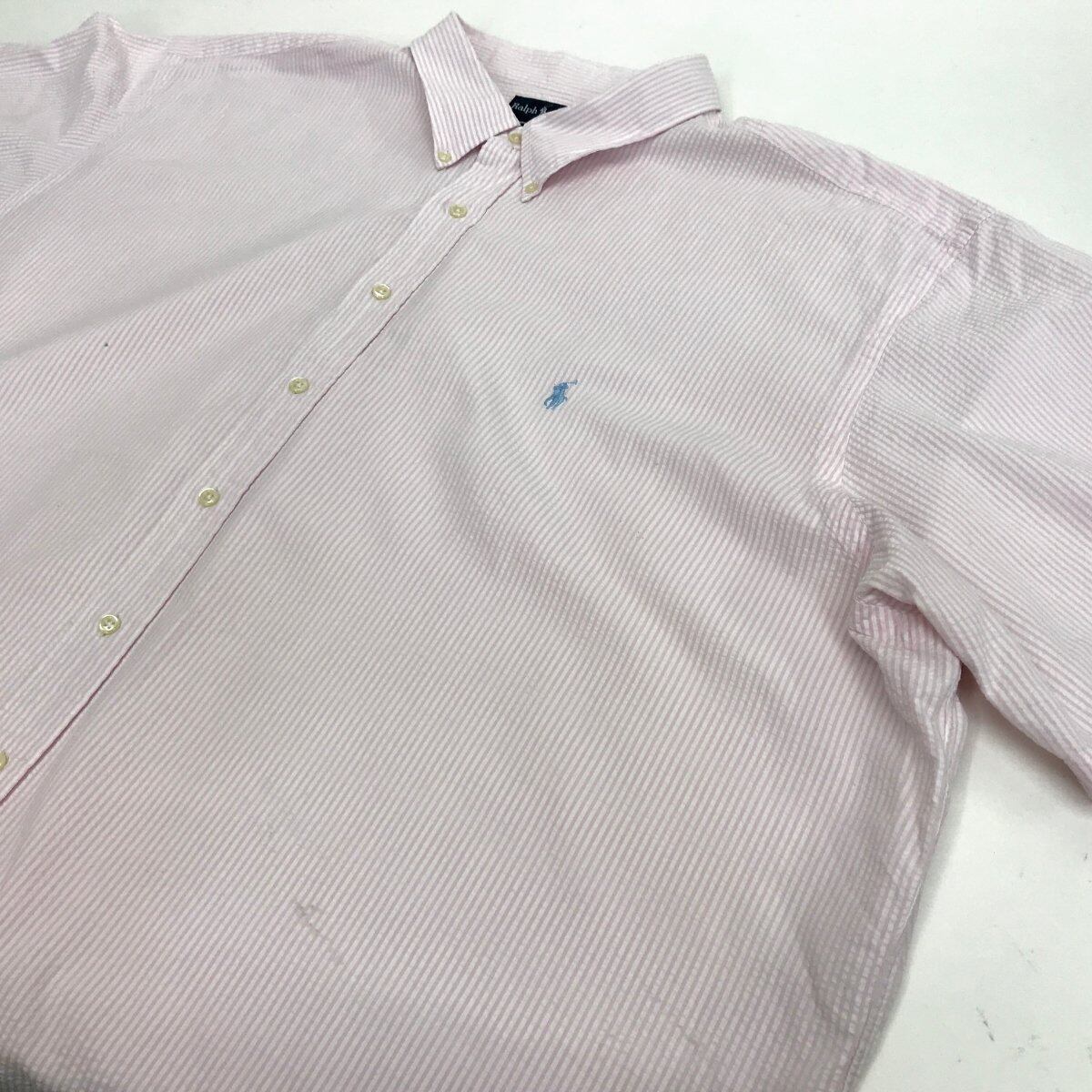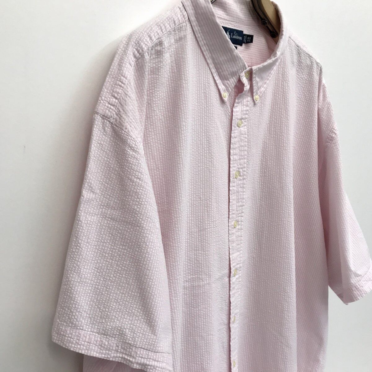 ラルフローレン 90年代 BRAKE シアサッカー ボタンダウンシャツ ピンク 超 ビッグ!4XL以上〜 半袖 タグ