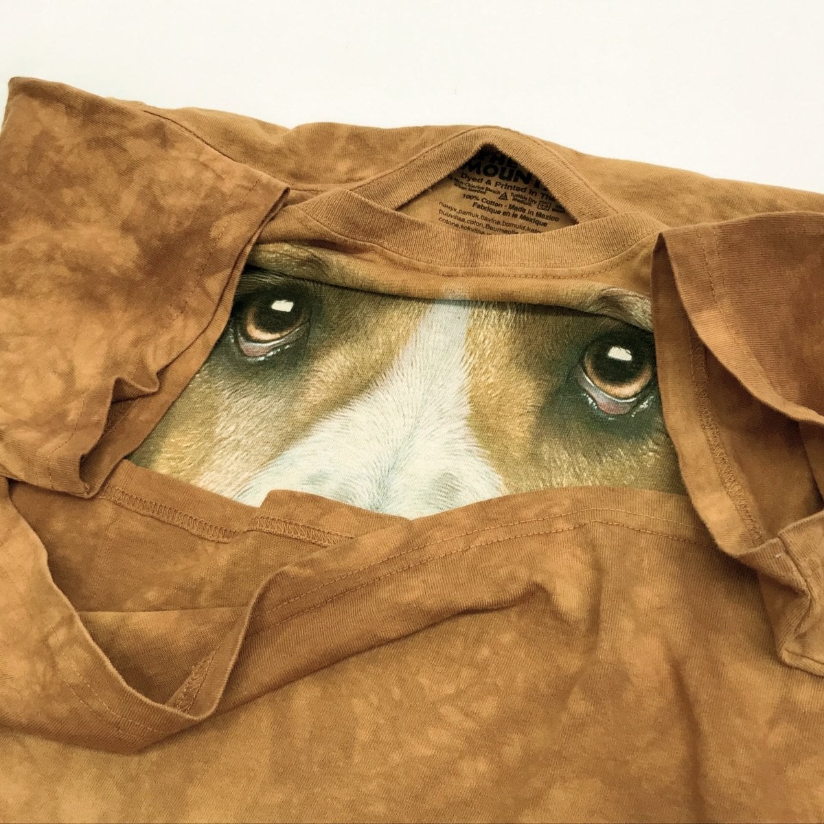 ザ マウンテン 00年代 VINCENT HIE バセット ハウンド ビッグフェイス 犬プリントTシャツ タイダイTシャツ オレンジブラウン半袖 L タグ