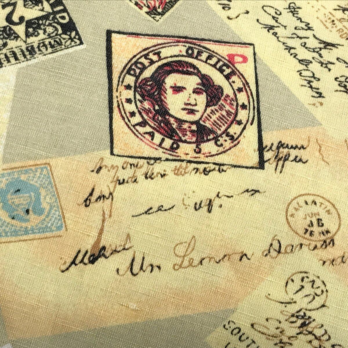 なつかしいレター・スタンプ・ポストマークのコラージュ柄なのですが