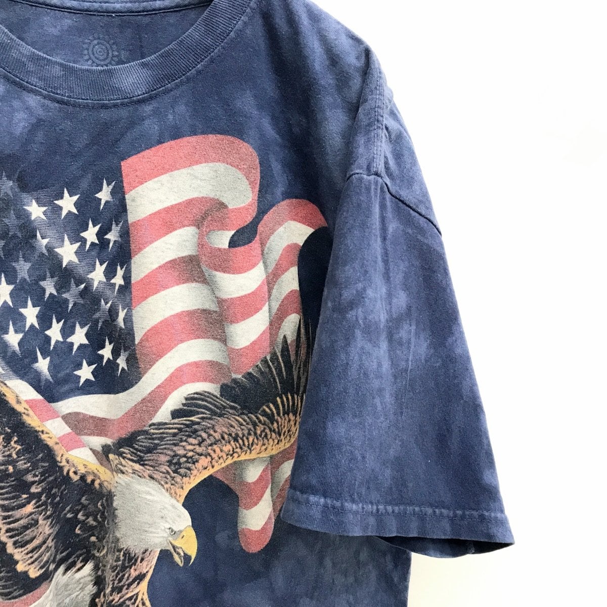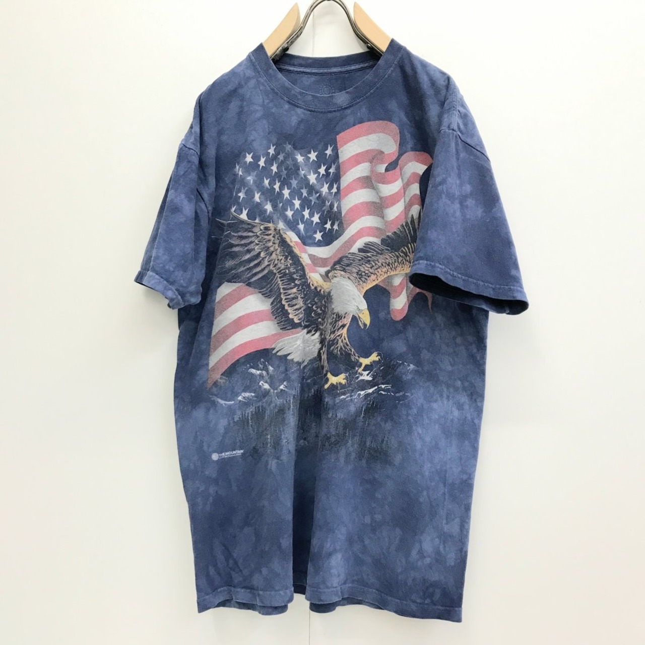 ザ マウンテン 00年代 TED BLAYLOCK BALD EAGLE 鷲 星条旗 プリントTシャツ タイダイTシャツ ネイビー 半袖 L タグ