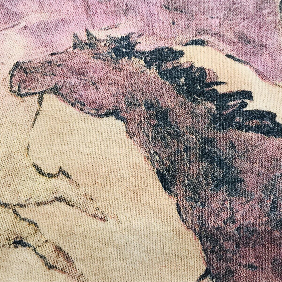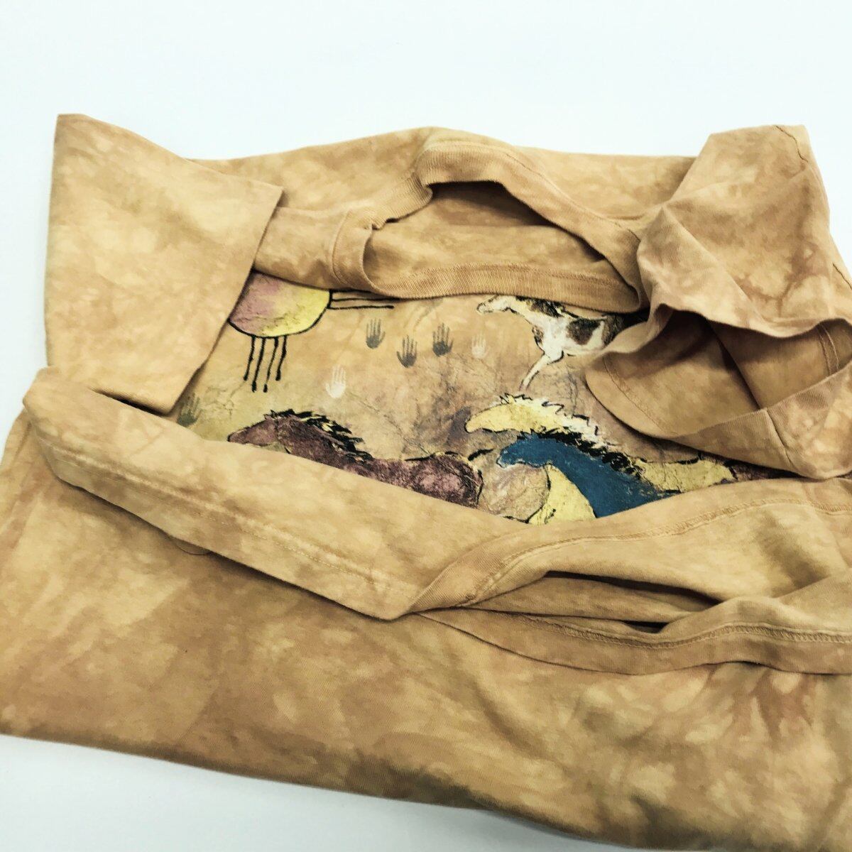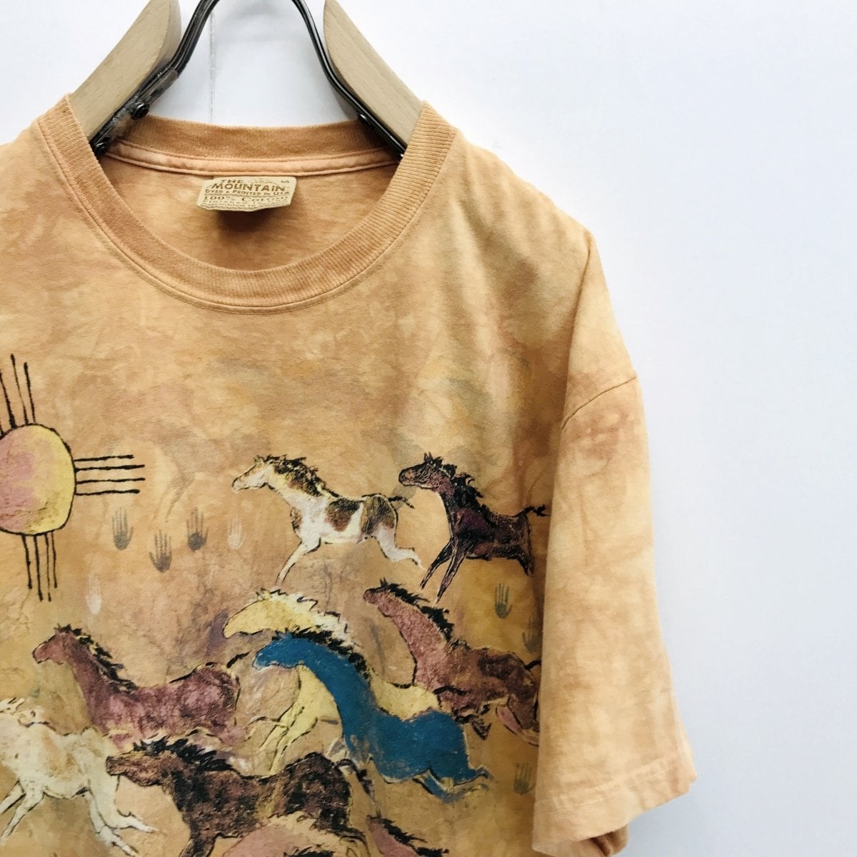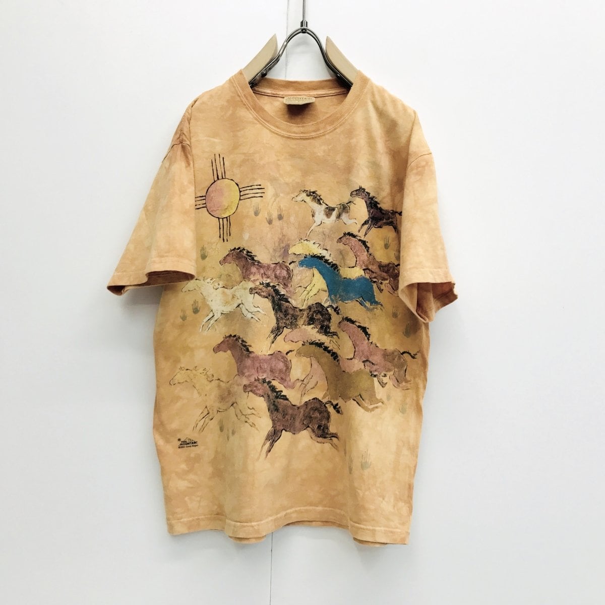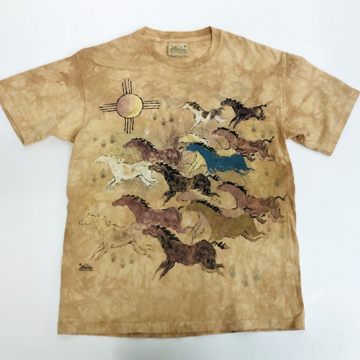 ザ マウンテン 00年代 GINNY HOGAN 壁画風 馬 HORSE プリントTシャツ タイダイTシャツ オレンジベージュ 半袖 L タグ