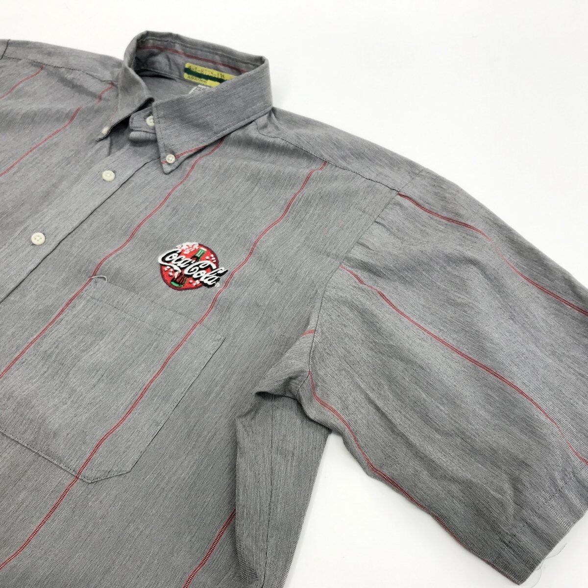 シンタス 90〜 00年代 USA製 COCA COLA コカコーラ ワークシャツ レッドストライプグレー XXL 半袖 タグ