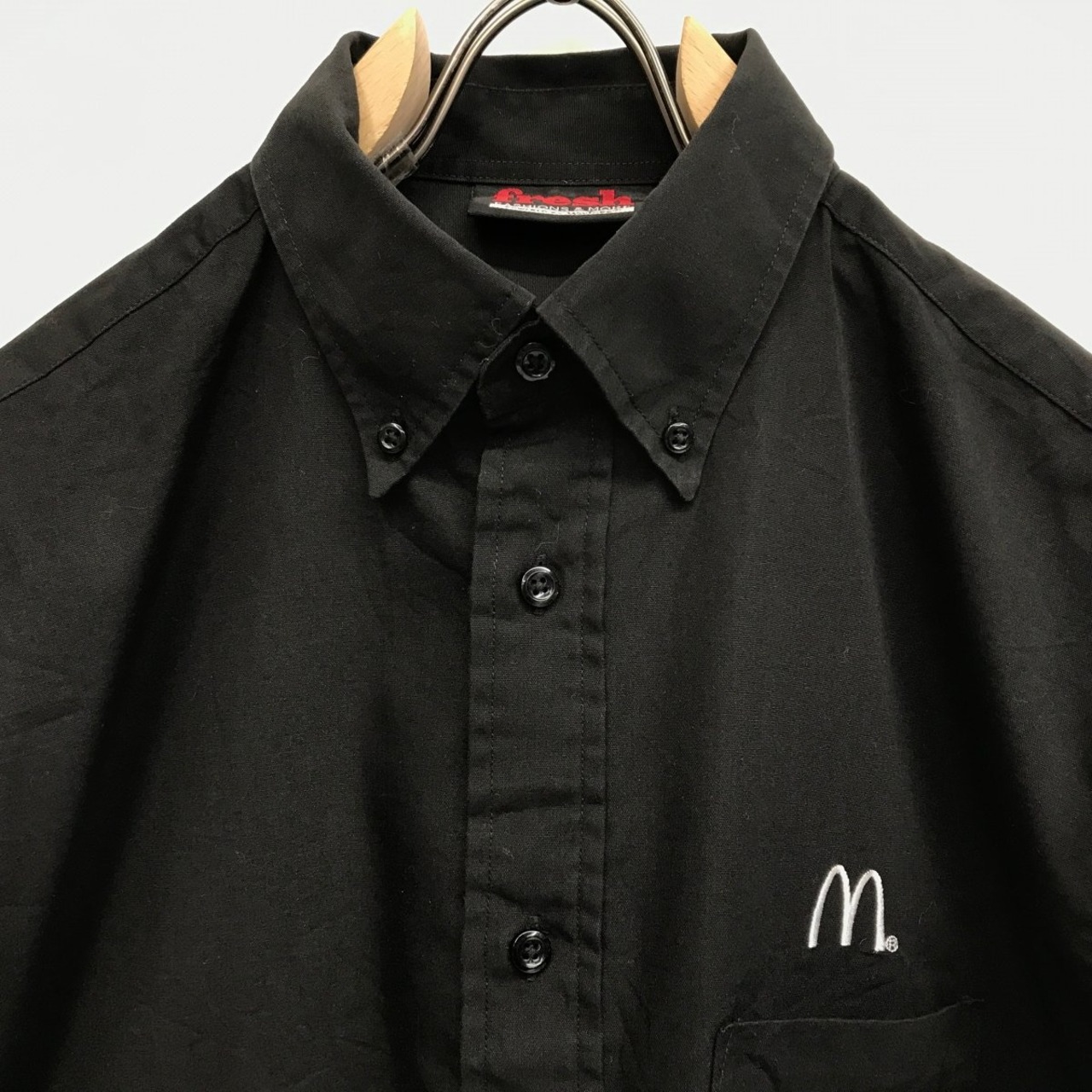 FRESH フレッシュ McDONALD'S マクドナルド ボタンダウンシャツ ワンポイント刺繍入り ワークシャツ ブラック L 半袖 タグ