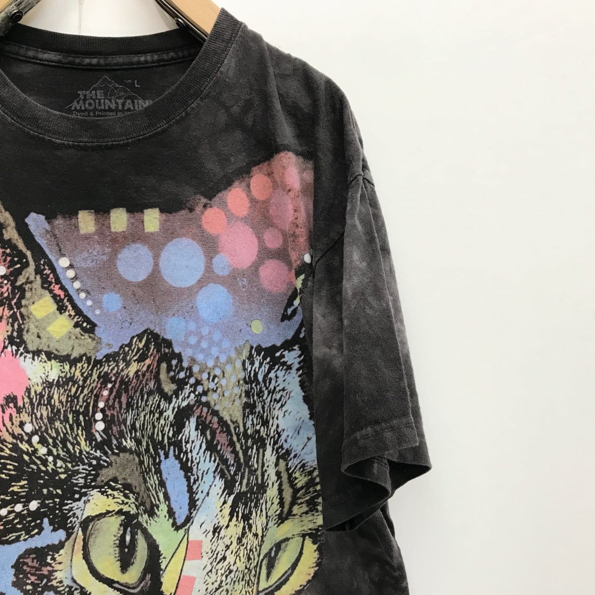 THE MOUNTAIN ザ マウンテン 00年代 DEAN RUSSO 猫 CAT アートプリントTシャツ タイダイTシャツ チャコールグレー ブラック XL 半袖 タグ