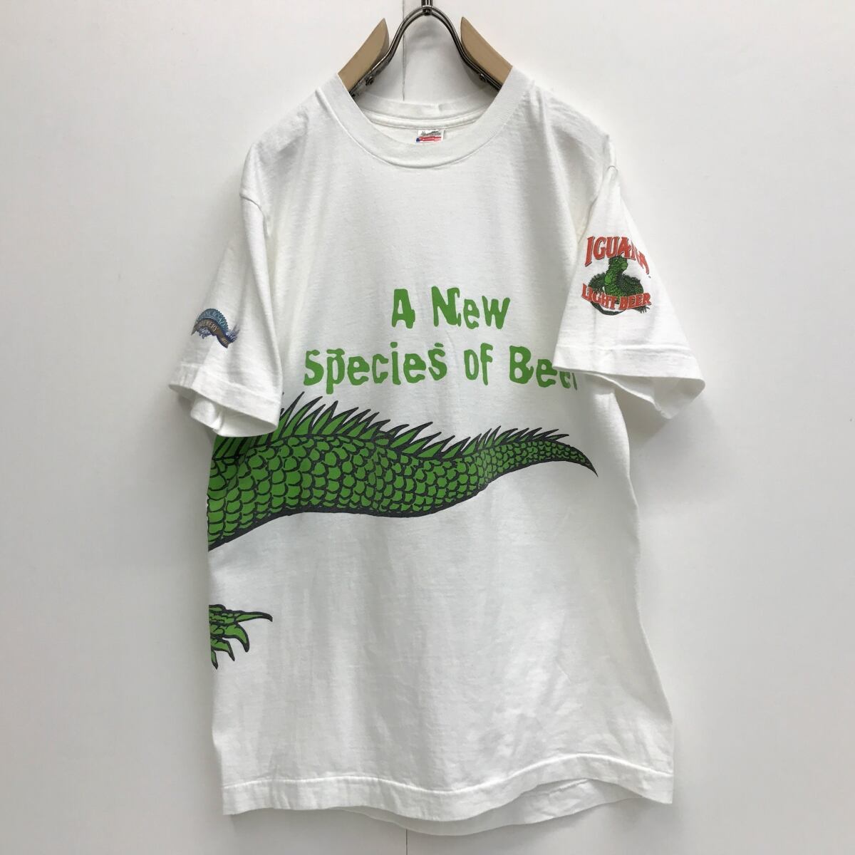 FRUIT OF THE LOOM フルーツオブザルーム 90年代 USA製 IGUANA LIGHT BEER イグアナ ビール 爬虫類 両面プリントTシャツ ホワイト 半袖 L タグ