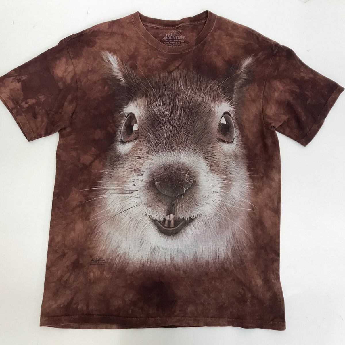 ザ マウンテン 00年代 DAVID PENFOUND SQUIRREL リスの ビッグフェイス プリントTシャツ タイダイTシャツ ブラウン半袖 XL タグ