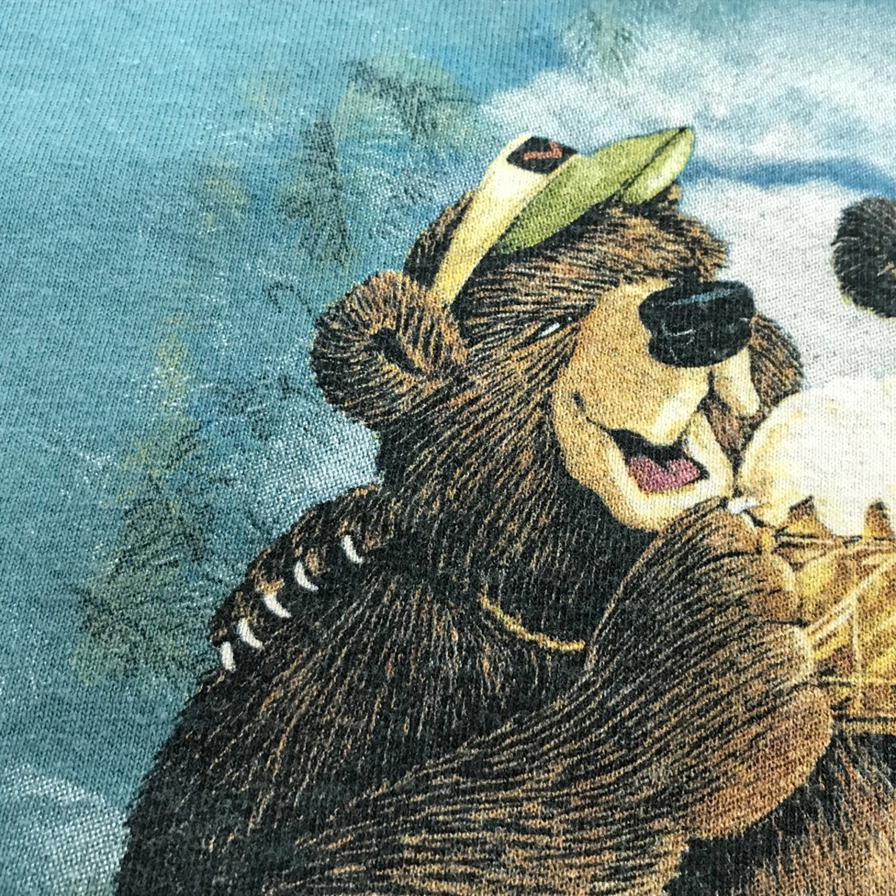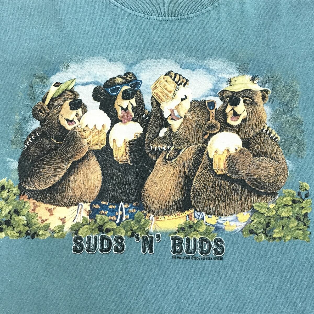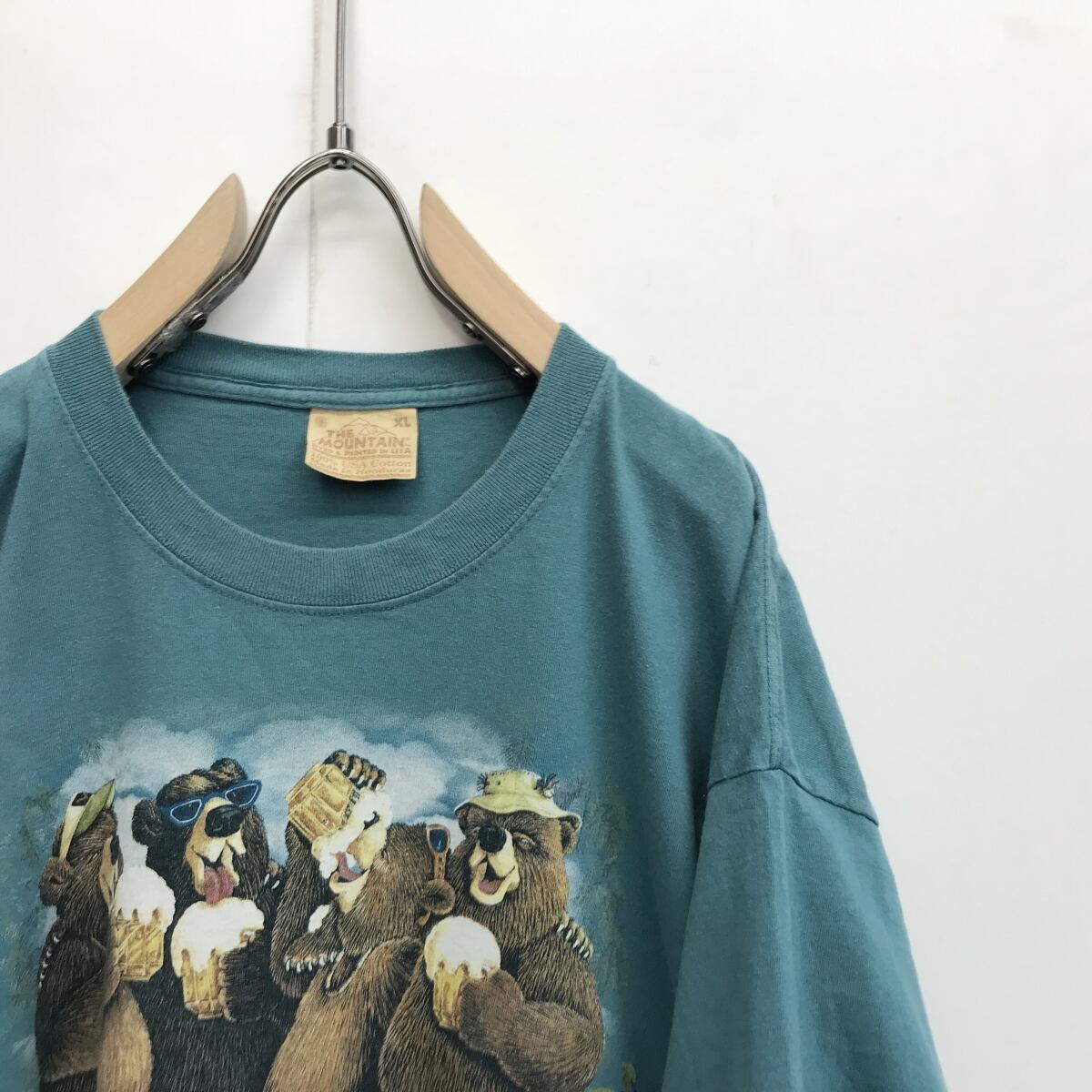 THE MOUNTAIN ザ マウンテン 00年代 JEFERY SEVERN LAUGHING BEAR 熊のビア・パーティー プリントTシャツ ターコイズグリーン XXL 半袖 タグ