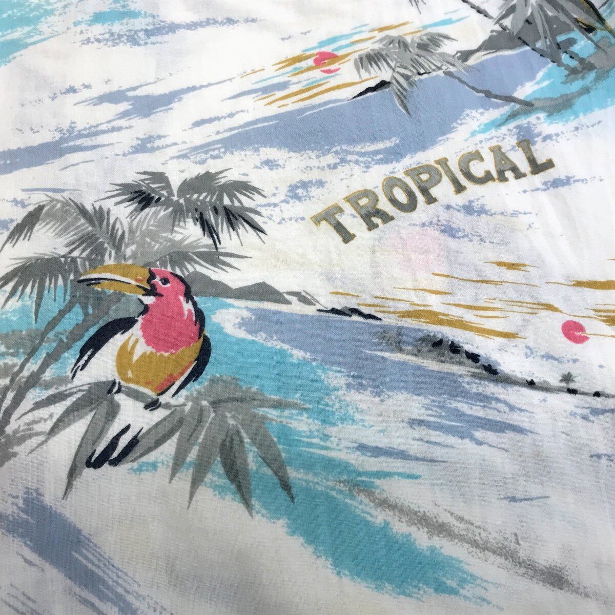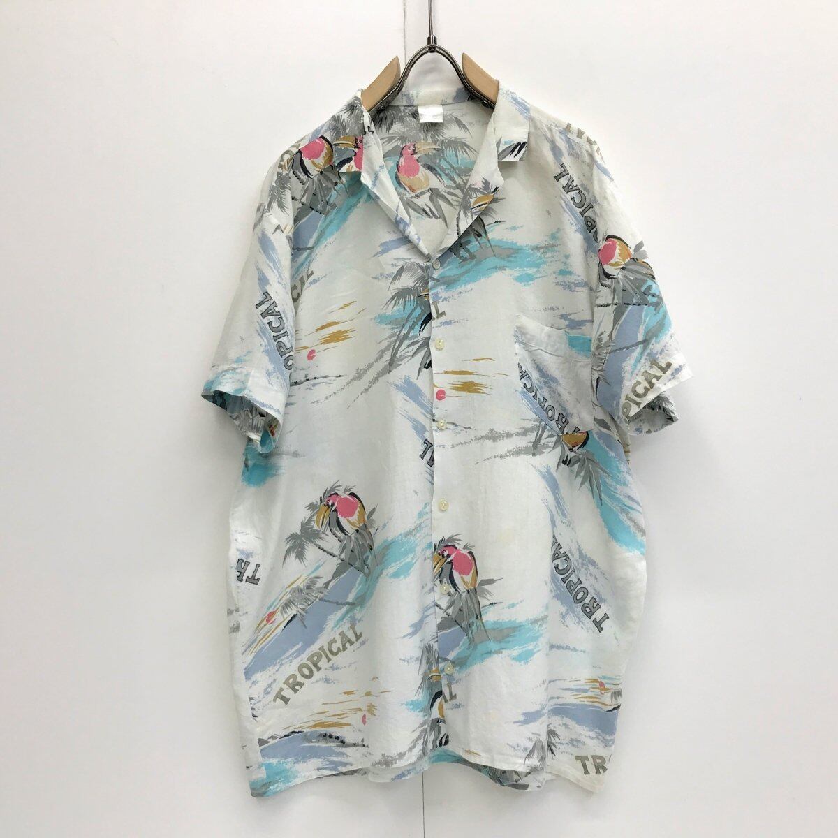 VINTAGE 80〜90年代 TROPICAL ポルトガル製 コットン アロハシャツ ハワイアンシャツ ホワイト 半袖 XL タグ