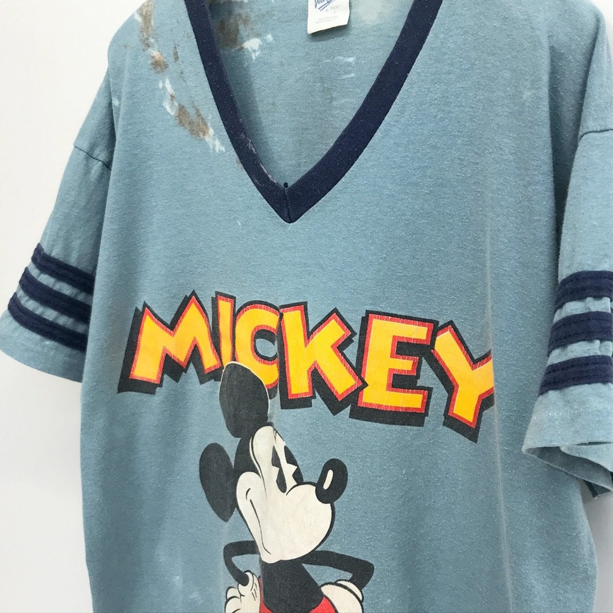 ベルバシーン 90年代 USA製 DISNEY MICKEY ミッキー フットボールTシャツ ブルーグレー ML 半袖 タグ