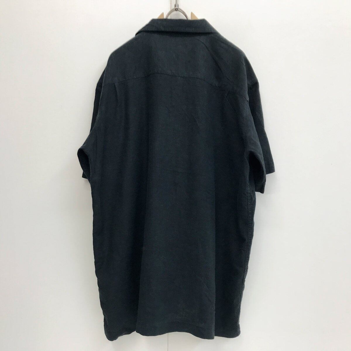 ハガー 90年代 リネン混 切り替え ラインシャツ オープンカラーシャツ ブラック XXL 半袖 タグ