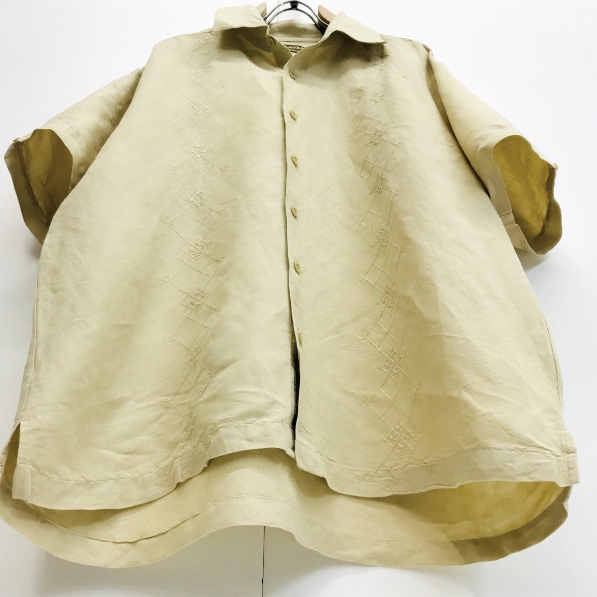開襟 リネン&レーヨン used リネン混 vintage リネンシャツ 刺繍入り