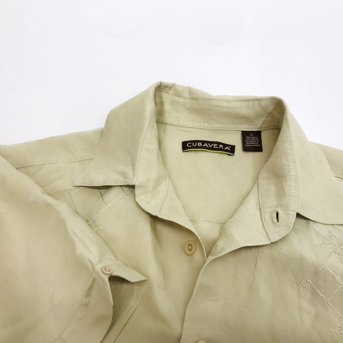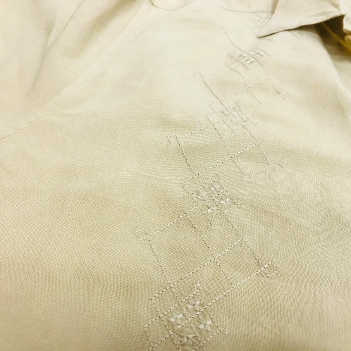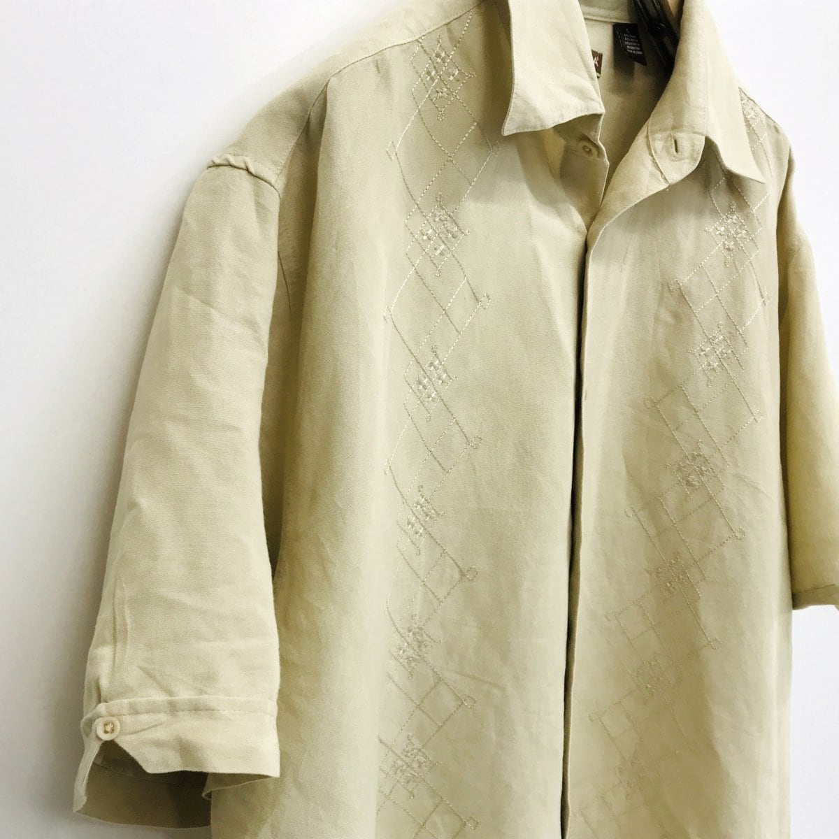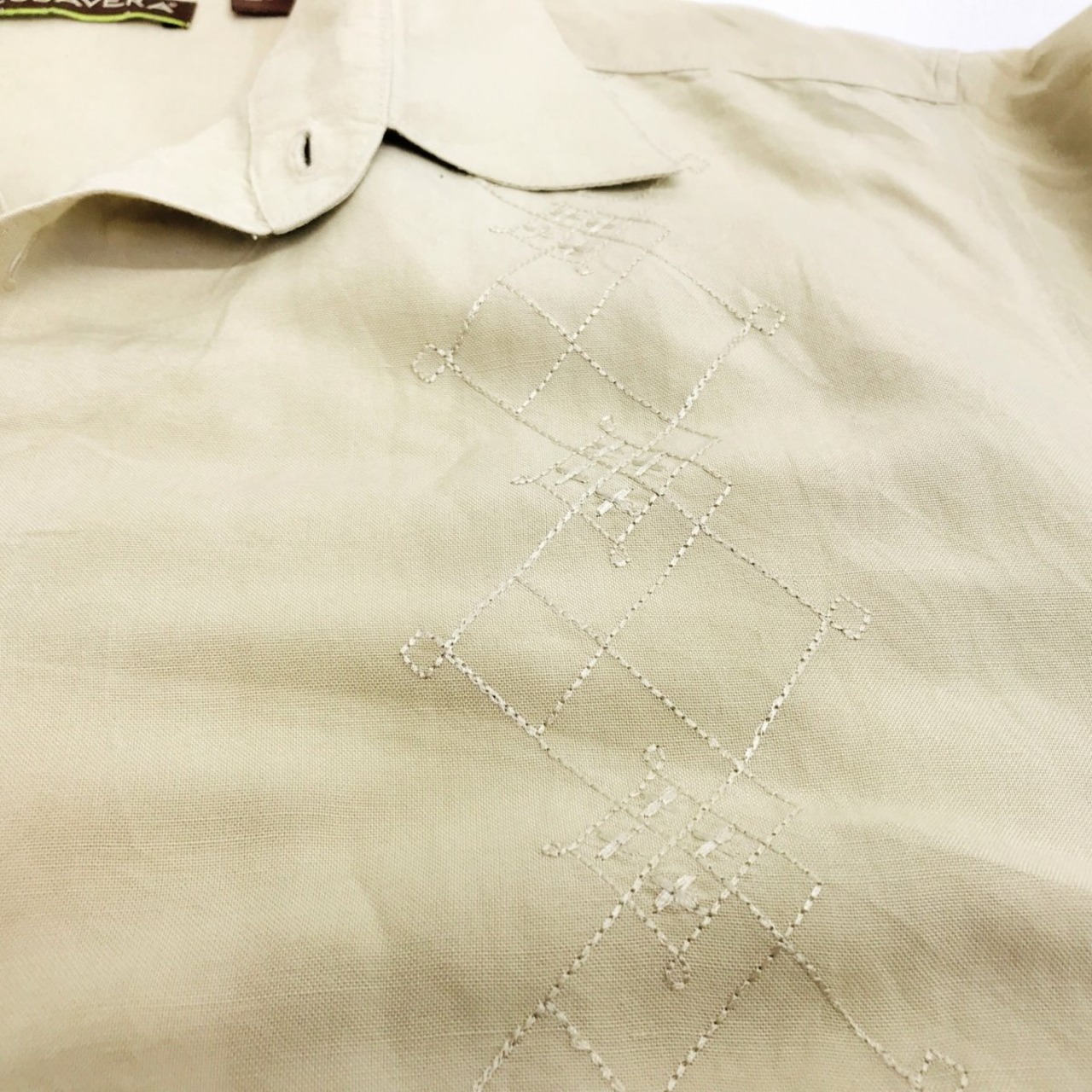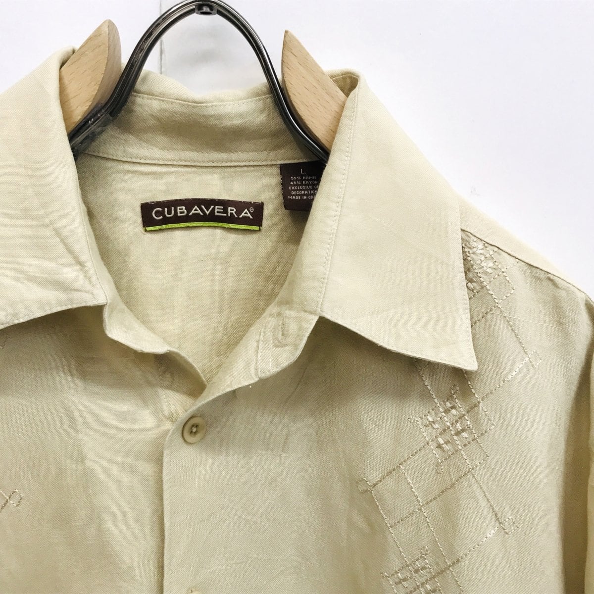 キューバベラ 90〜 00年代 リネン混 刺繍シャツ ベージュ XL 半袖 タグ