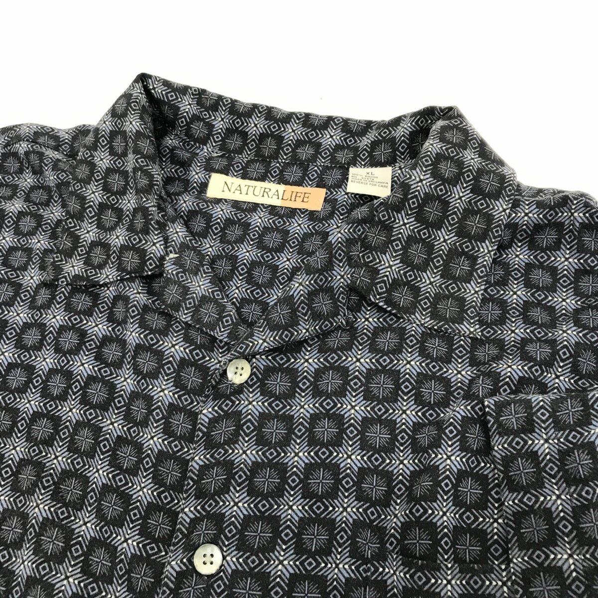 総柄 レーヨンオープンカラー 開襟シャツ ブラック XXL 半袖 タグ