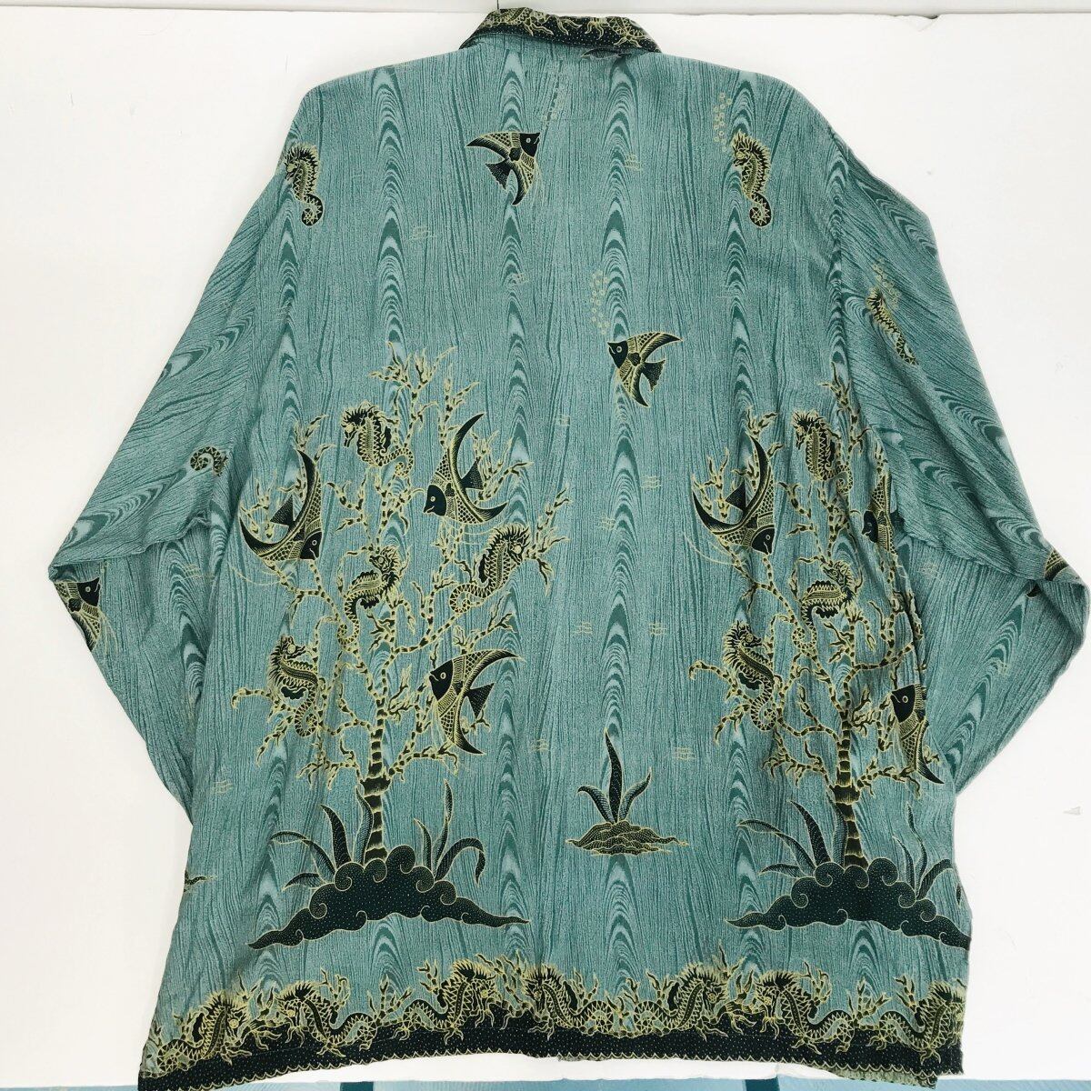 PRESIDENTIAL SHIRT アフリカンプリント 魚柄 エスニック レーヨンシャツ グリーン XXXL 長袖 タグ