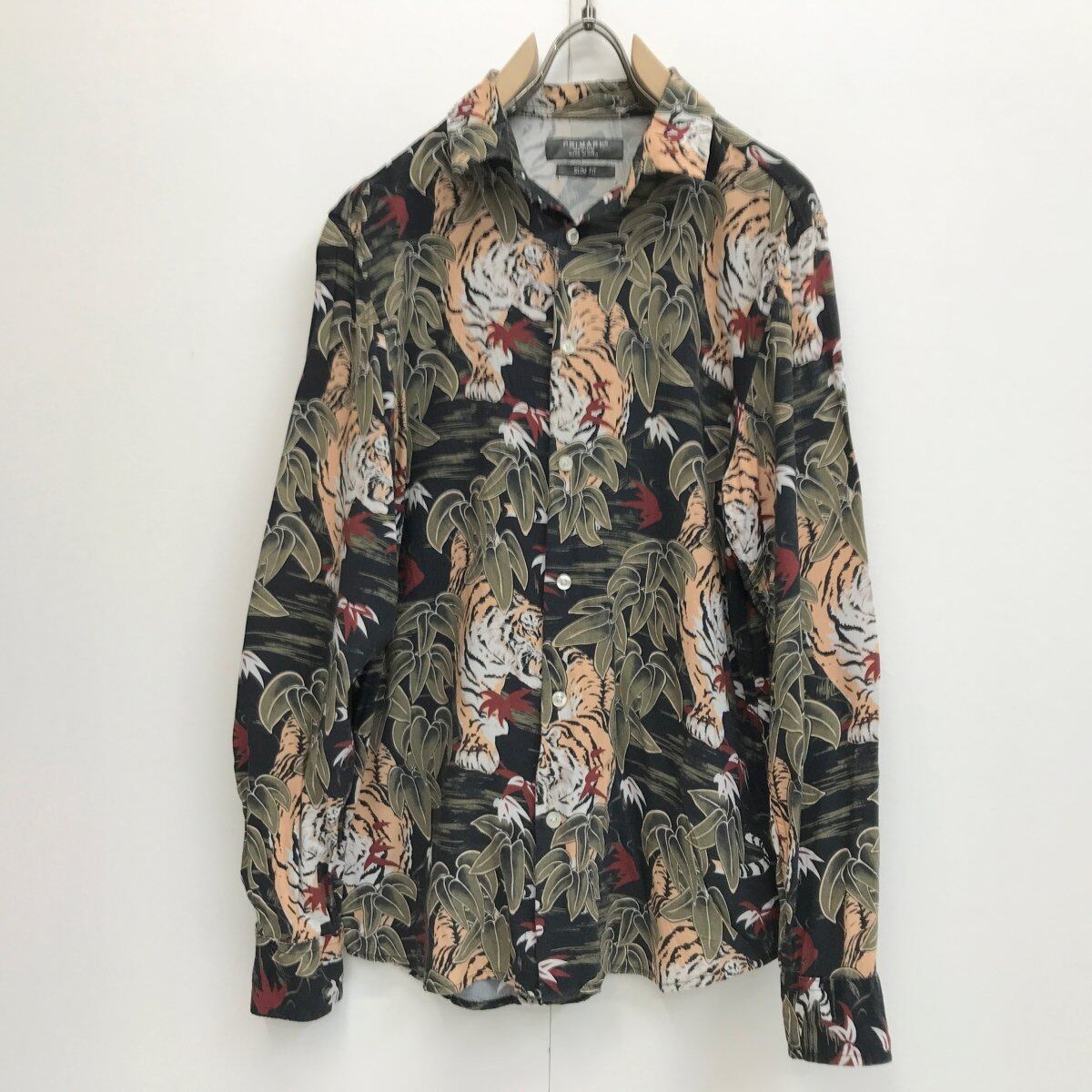 PRIMARK プリマーク 総柄 和柄風 虎 タイガー柄 タイトシルエット レーヨンシャツ アロハシャツ風 L 長袖 タグ