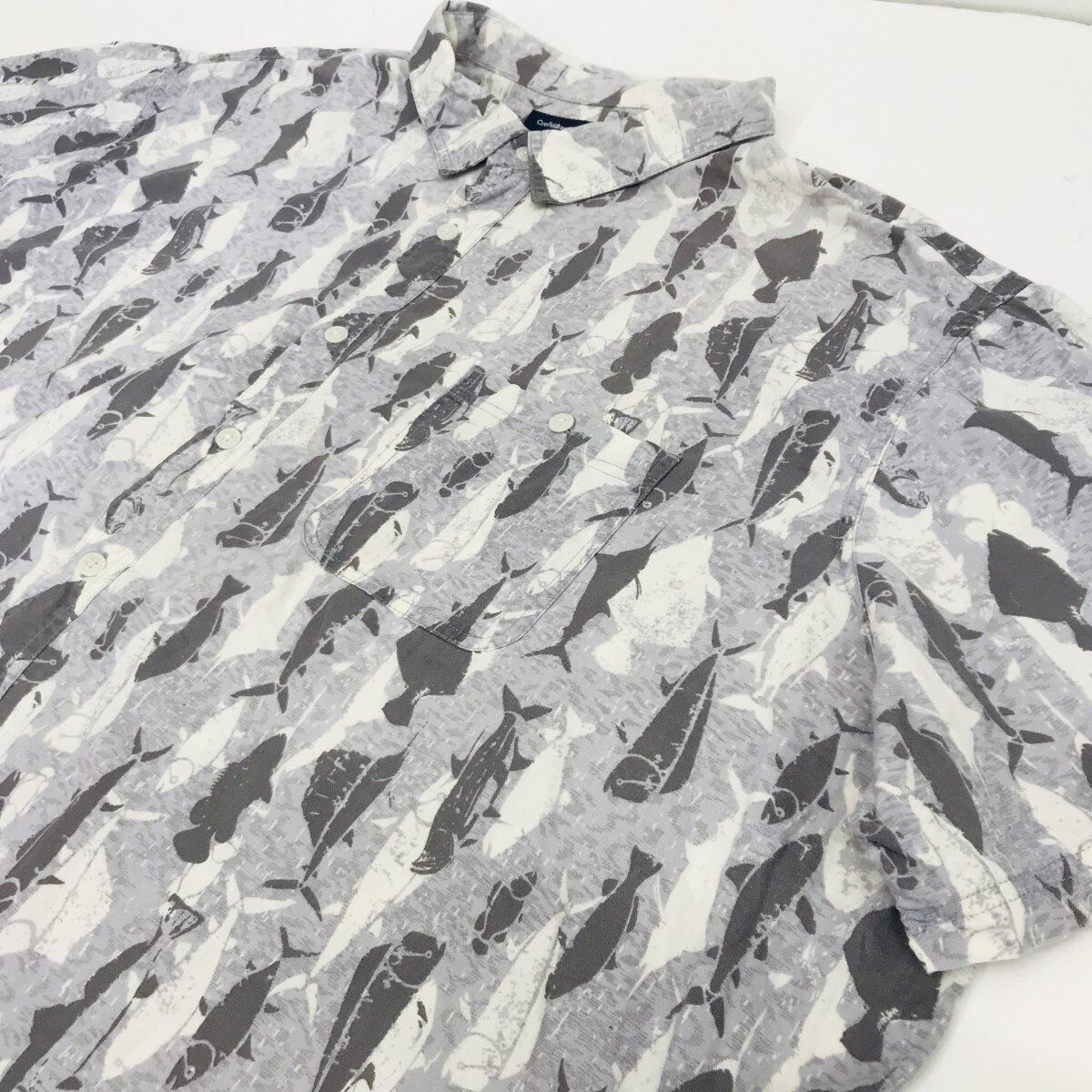 クラフトアンドバロー 90〜 00年代 魚柄シャツ 総柄シャツ グレー 4XL以上 ビッグ 半袖 タグ