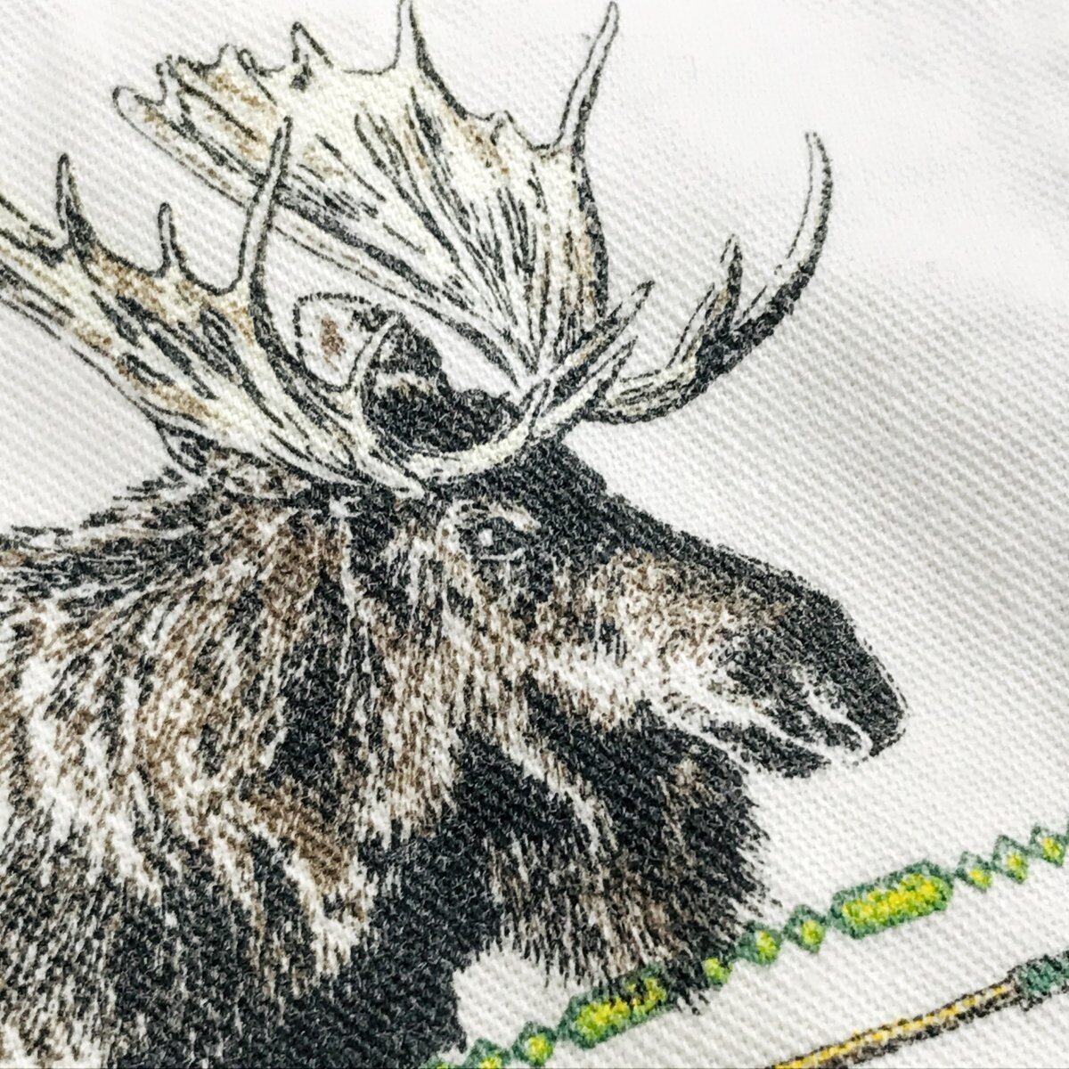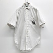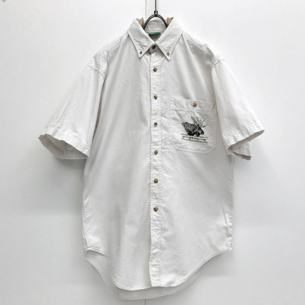 コールドウォータークリーク 90年代 USA製 コットンツイル ヘラジカ プリント入り ボタンダウンシャツ ホワイト L 半袖 タグ